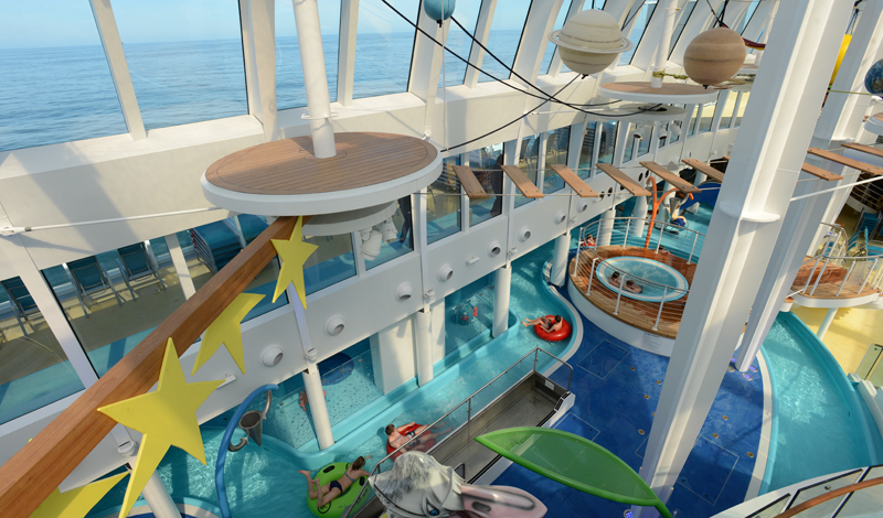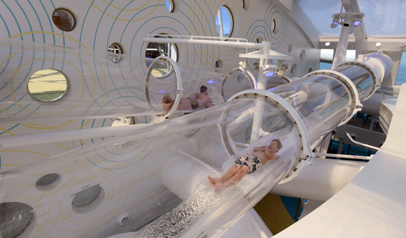 Danach genossen wir die ersten Sonnenstrahlen des Tages, um ein paar Runden zu schwimmen und eine rasante Wasserrutschfahrt zu unternehmen. Der Racer, wie die Wasserrutsche heißt, ist ein weiteres Highlight auf dem Pooldeck und führt teilweise durch Glasröhren über mehrere Decks.