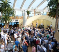 Unter dem Motto „Beaches Around the World“ heizten die Sänger und Musiker des Beachclubs-Ensembles und ein Diskjockey den Feiernden ordentlich ein. Die neuartigen Licht- und Laserprojektionen am Foliendach und an der Wasserleinwand sind ein Highlight und laden zum Träumen ein.