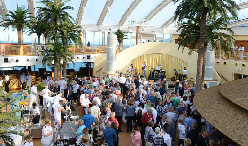 In gleich acht Bars gibt es zu Beginn der Reise sogenannte Welcome-Partys und Begrüßungen. Die größte Party findet unter dem Foliendach im Beachclub auf Deck 15 statt. Hier lässt es sich auch bei kaltem Wetter hervorragend aushalten und eine Spezialfolie sorgt auch bei Regen oder Sturm für echtes Beachfeeling.