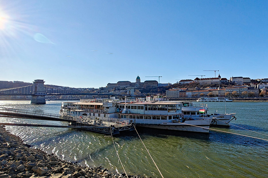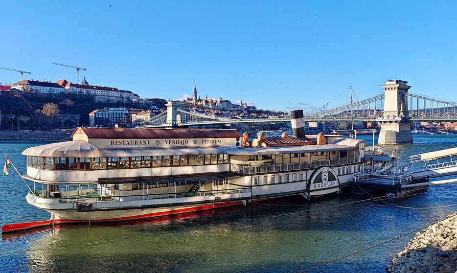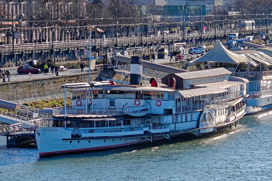 Was mir persönlich viel Freude macht, sind die drei historischen Raddampfer, die in Budapest liegen: die Kossuth, die Stadt Wien und die Grószéchenyi. Alle drein sind wohl für den Winter außer Dienst, aber zumindest von außen können wir sie bewundern.