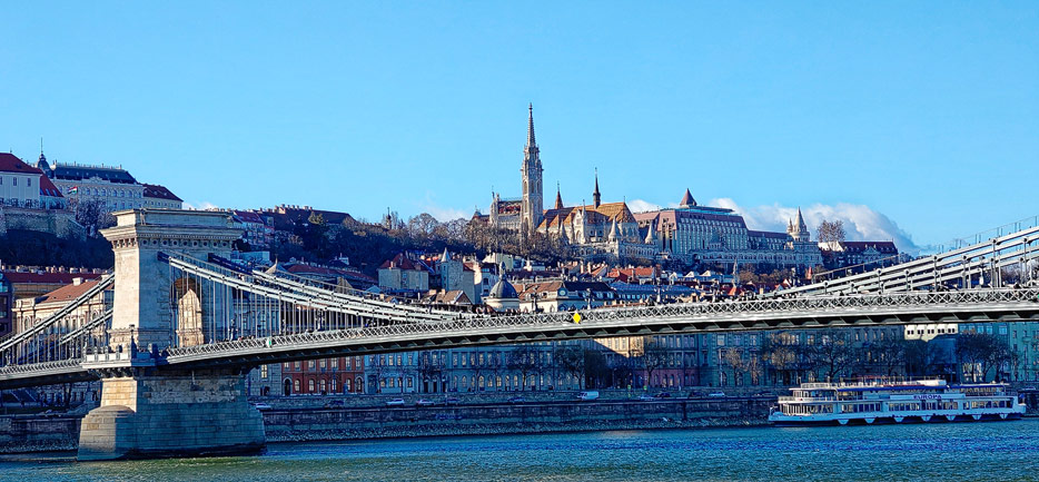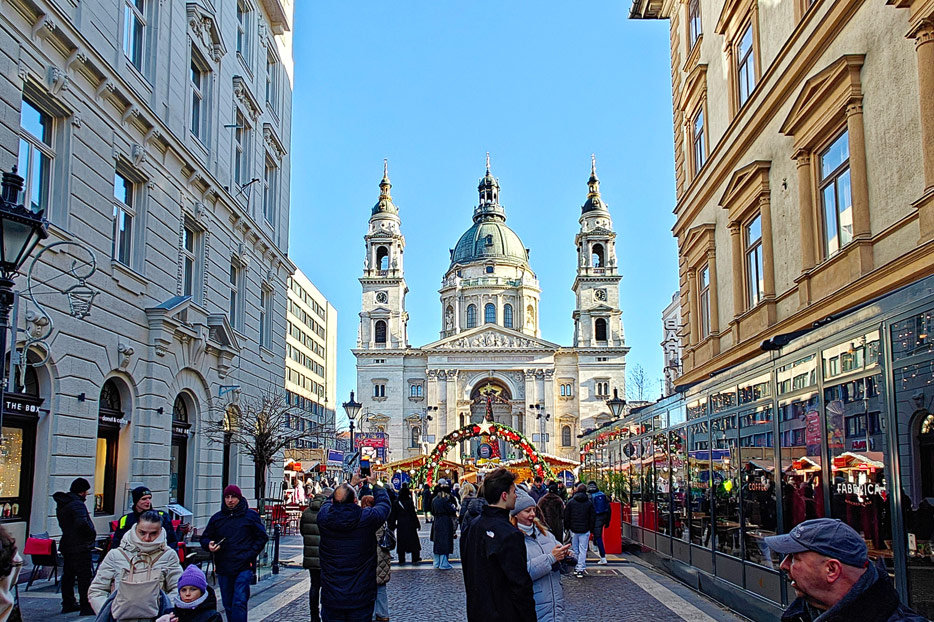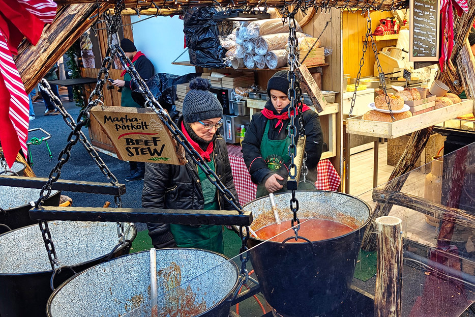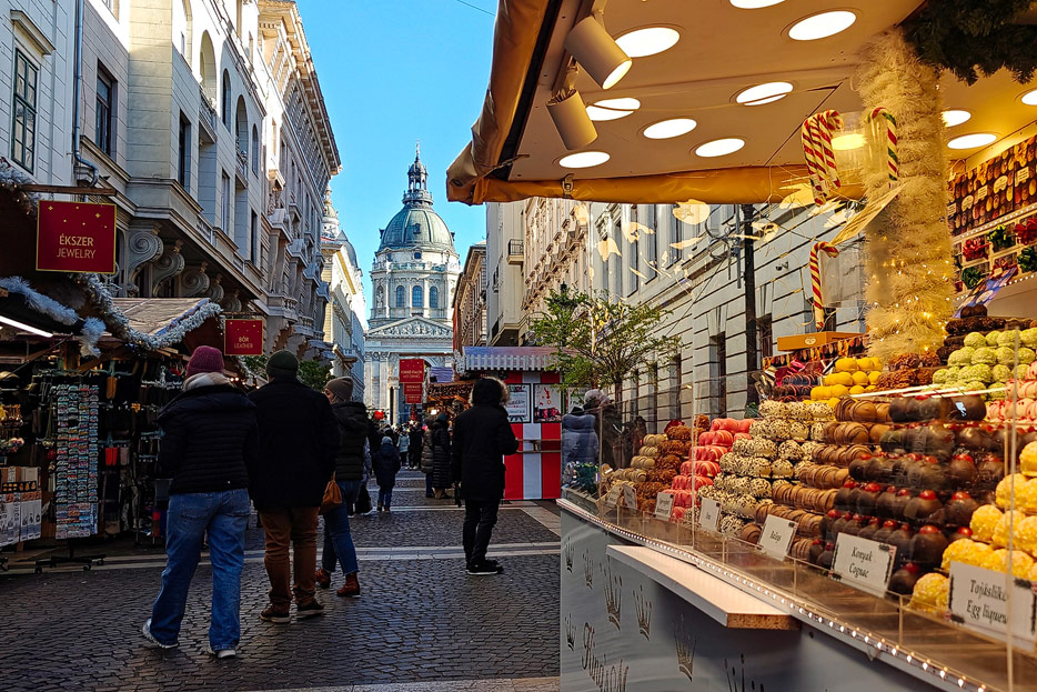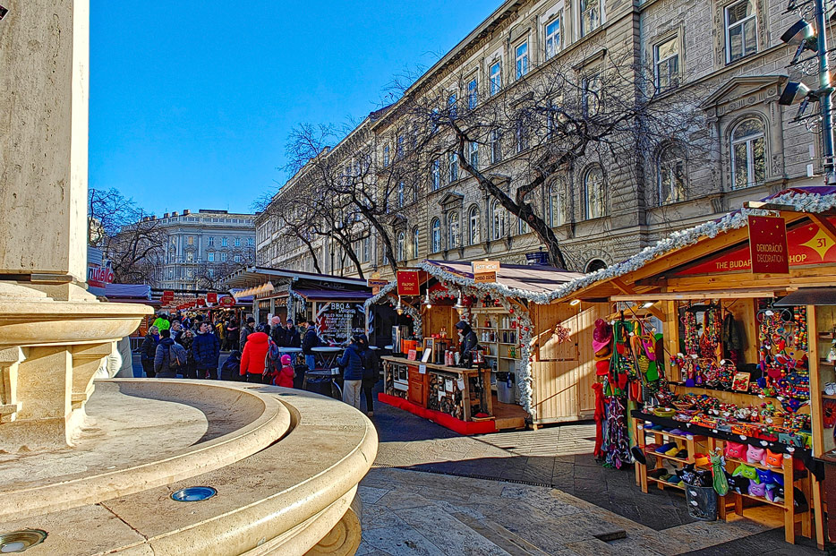 Es ist ein sonniger Wintertag, nur der Wind bläst eisig über die Donau in Budapest. Mit dem Bus fahren wir eine gute Stunde von Komarom in die ungarische Hauptstadt und lassen uns einfach ein wenig treiben, entlang der Donau, zu zwei Weihnachtsmärkten, hinauf auf den Burgberg.