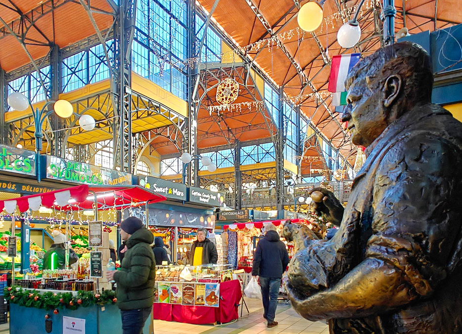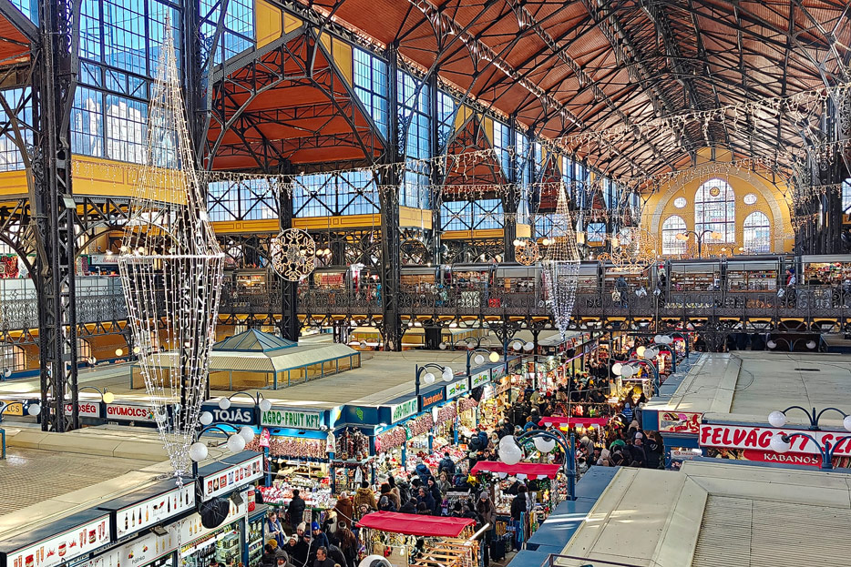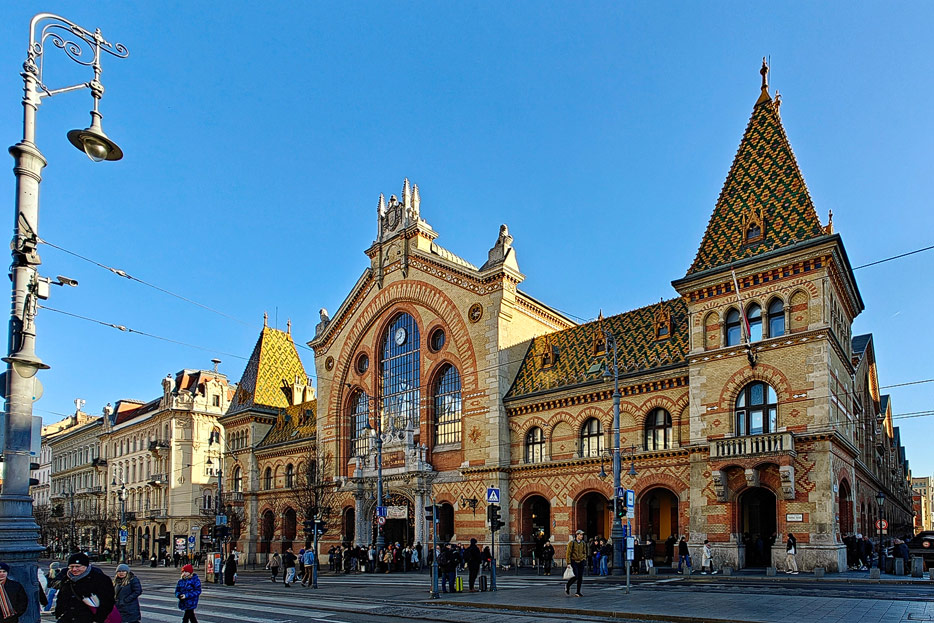 Budapest also: Es sind die Jugendstil-Fassaden von so vielen Häusern, die mich am meisten faszinieren in dieser Stadt. Dazu gehört auch die riesige Markthalle, heutzutage recht touristisch und doch mit viel Flair. Ein Besuch beim Aldi im Kellergeschoss lohnt sich, um ein realeres Bild von Budapest zu bekommen.