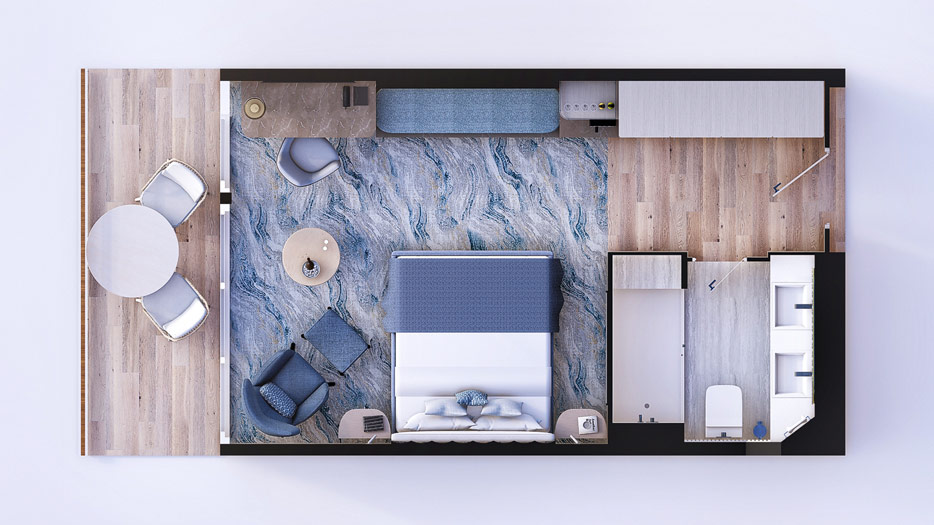 Alle Modernisierungen und Neuerungen will Azamara Cruises auf allen vier Schiffen der Flotte umsetzen. Ein Feature ist aber exklusiv für die Azamara Quest vorgesehen: ein neues Penthouse-Deck mit zwölf großen, zusätzlichen Suiten – zwei Panorama-Suiten sowie zehn sogenannte Grandview-Suiten.