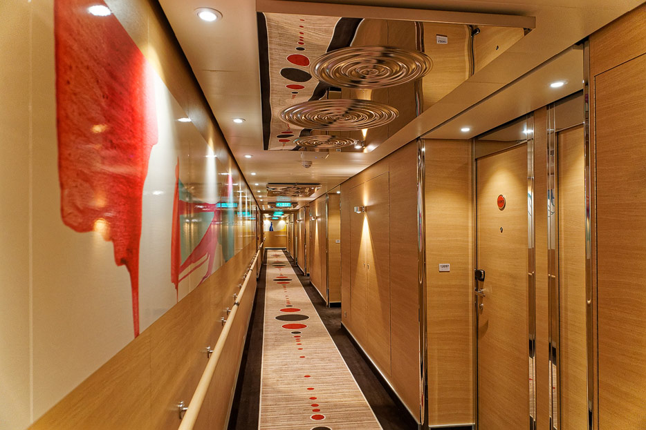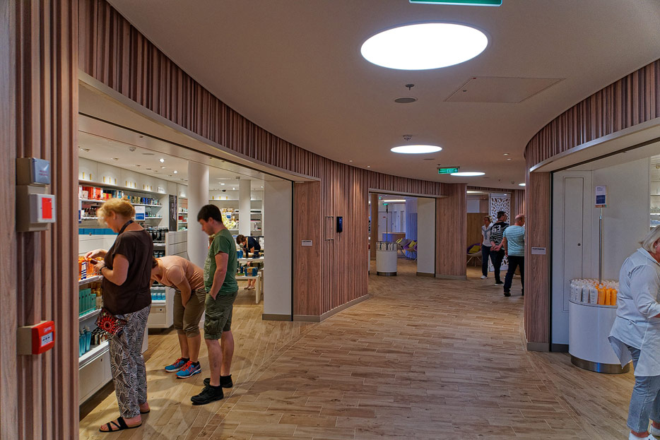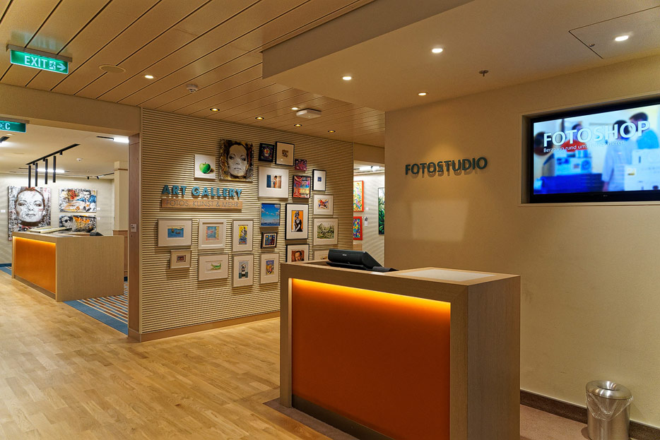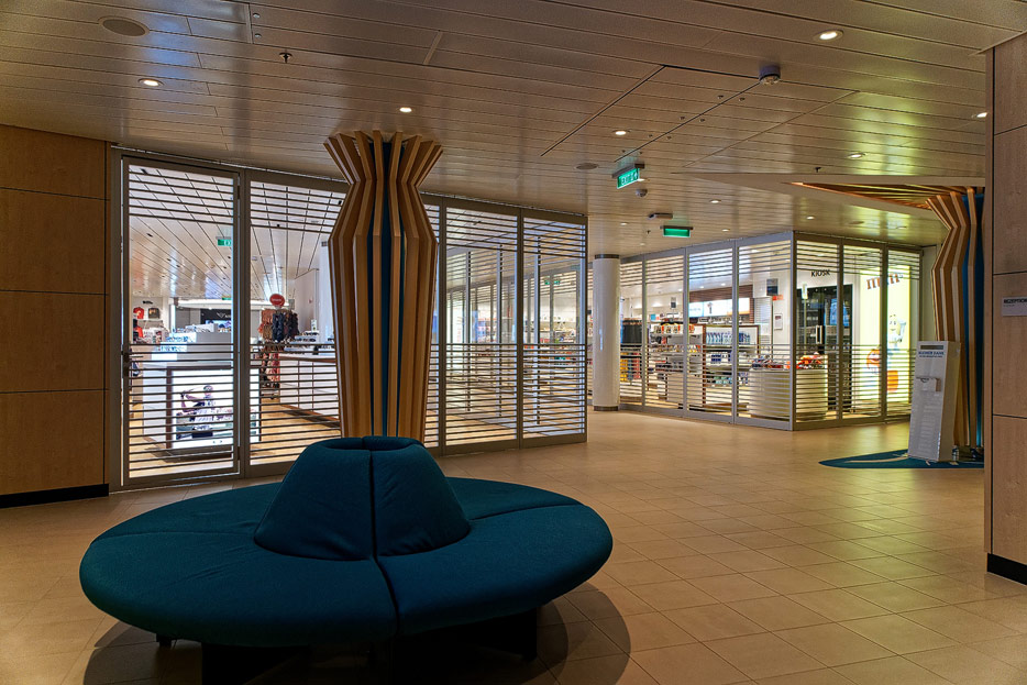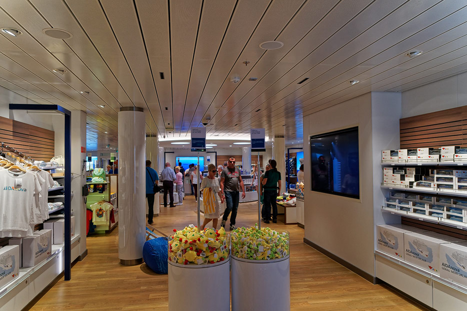 Bilder sonstiger Bereiche auf der AIDAnova, u.a. Rezeption, Shops, Waschsalon, Treppenhäuser und Aufzüge