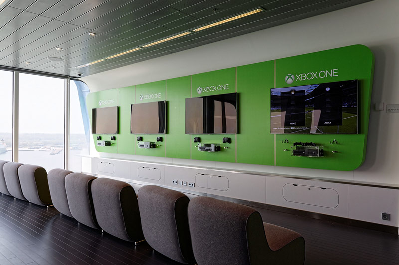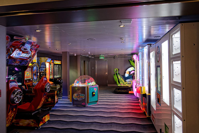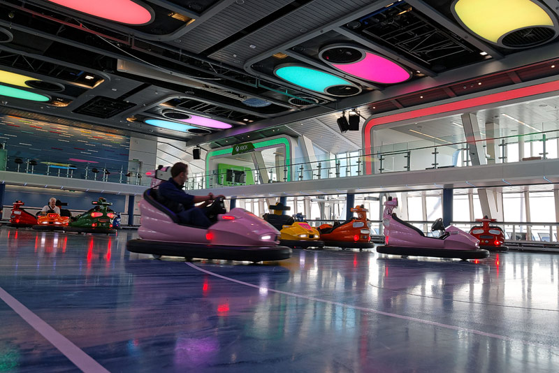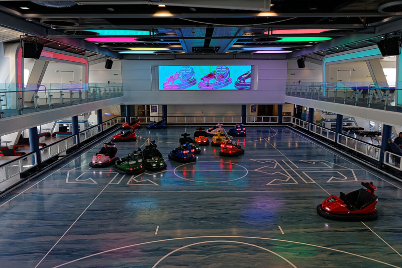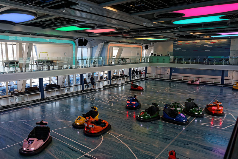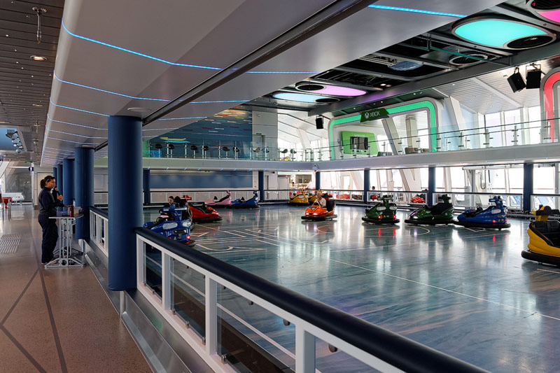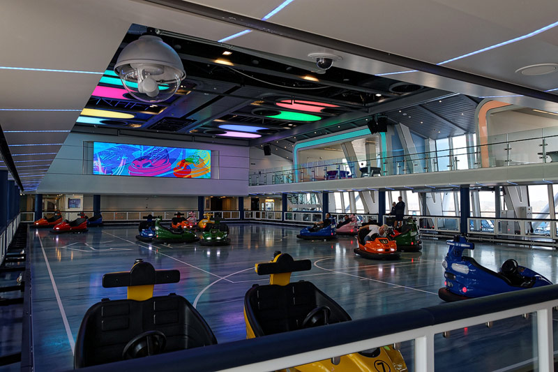 Seaplex-Bereich der Anthem of the Seas mit Autoscooter, Trapez, Flow Rider und Ripcord