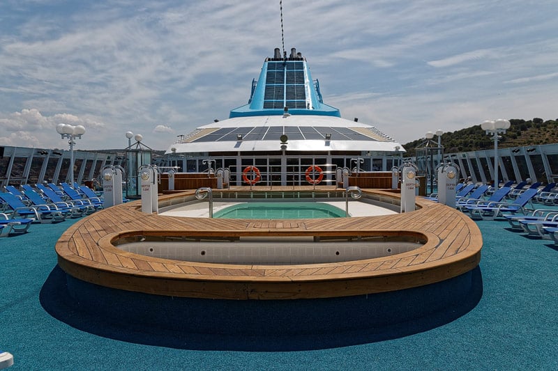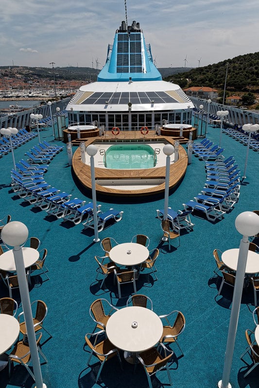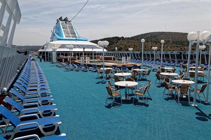 Sonnendecks, Promenade, Pooldeck der Celestyal Nefeli