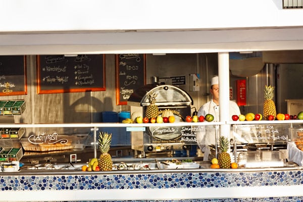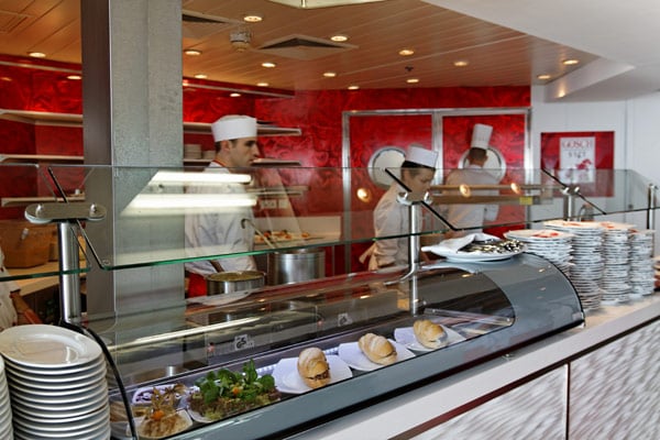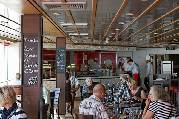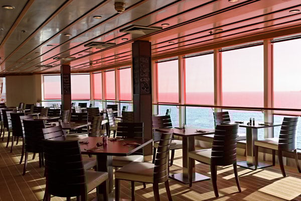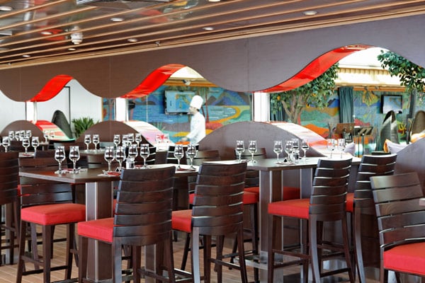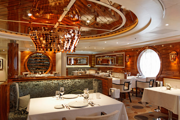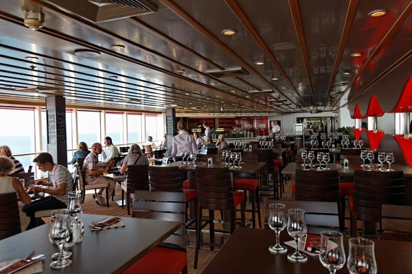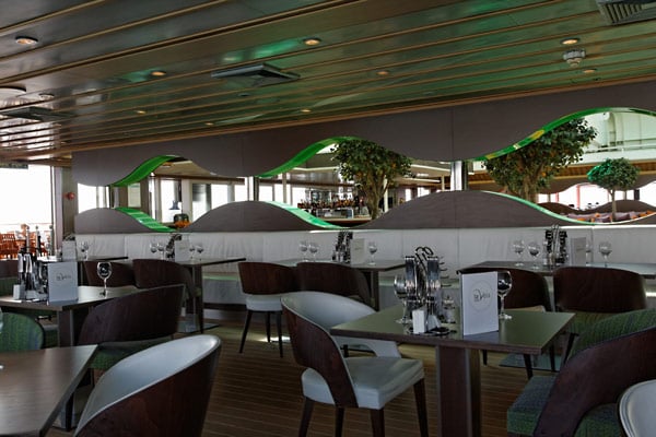 Restaurants der Mein Schiff 2: Anckelmannsplatz, Atlantik, Blaue Welt Sushi, Cliff 24 Grill, Gosch Sylt, La Vela, Richards Feines Essen, Steakhaus Surf & Turf