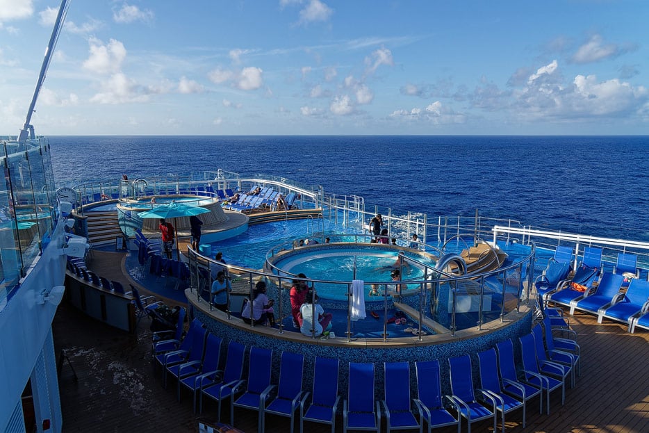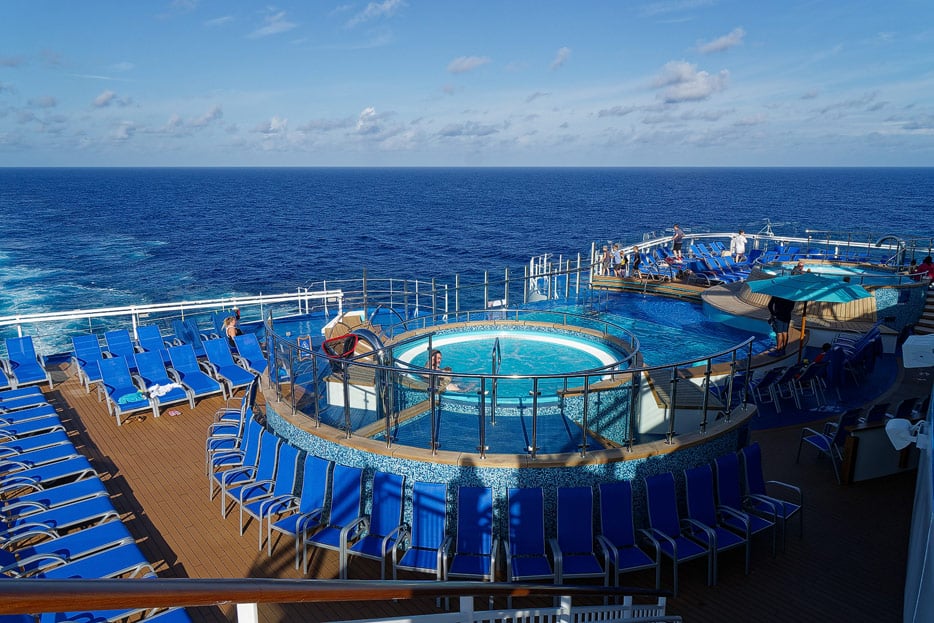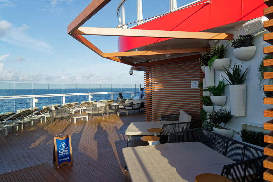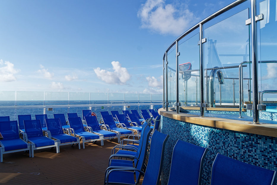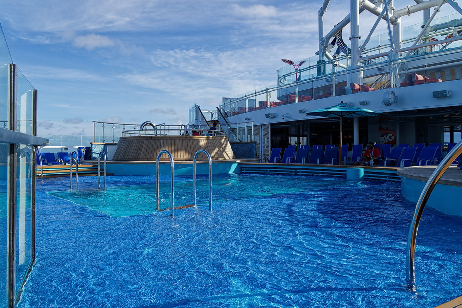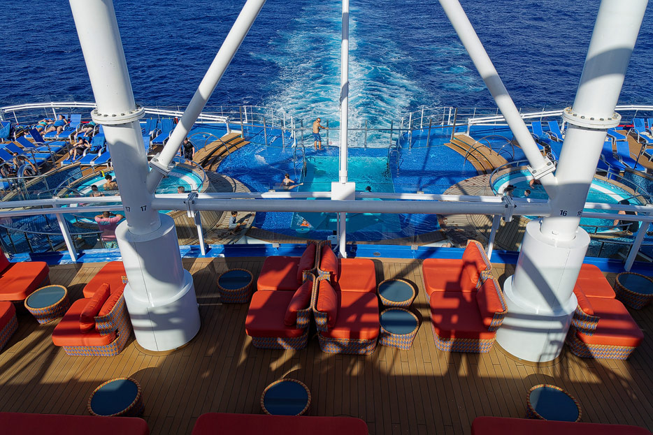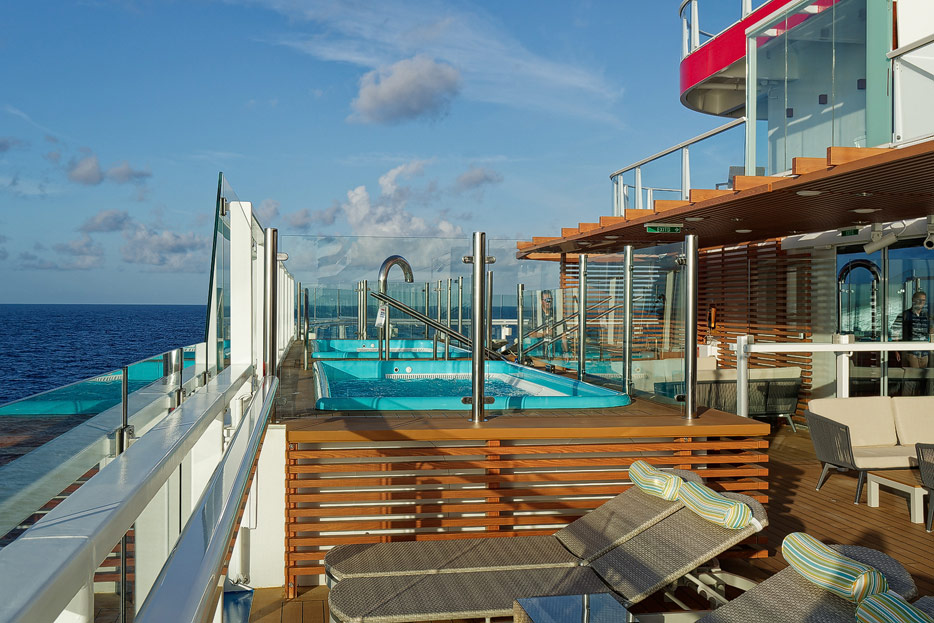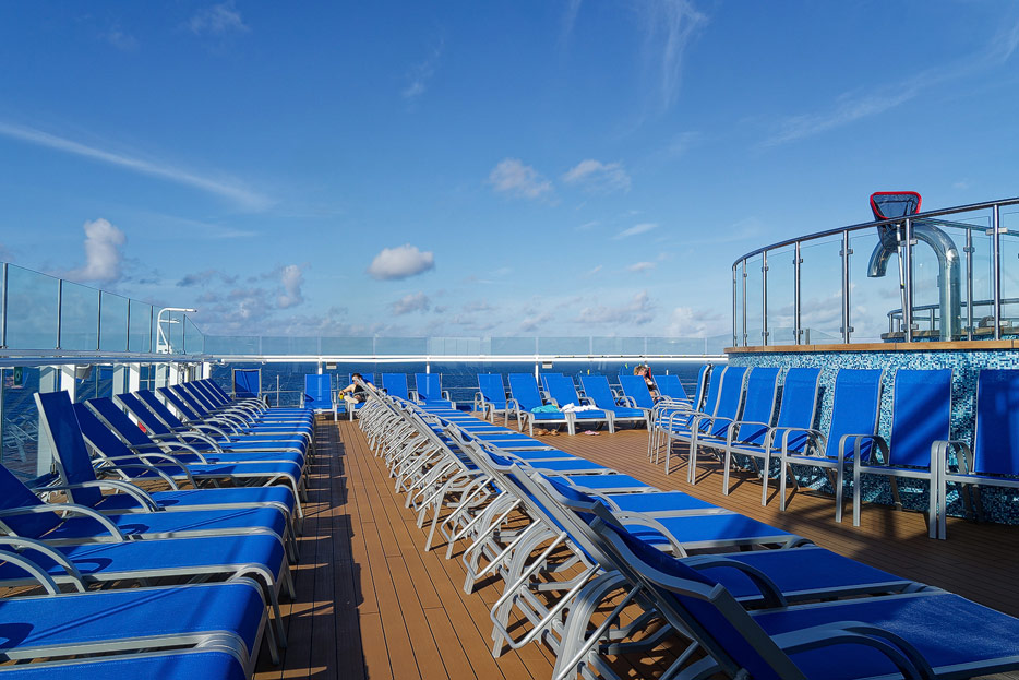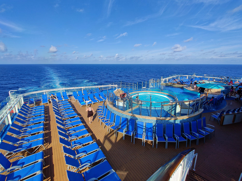 Bilder der Pools und Sonnendecks auf der Carnival Celebration inklusive des Erwachsenenbereichs Serenity Retreat und der beiden exklusiven Bereiche Loft 19 und The Lanai
