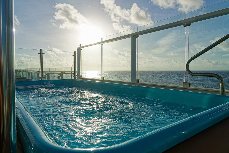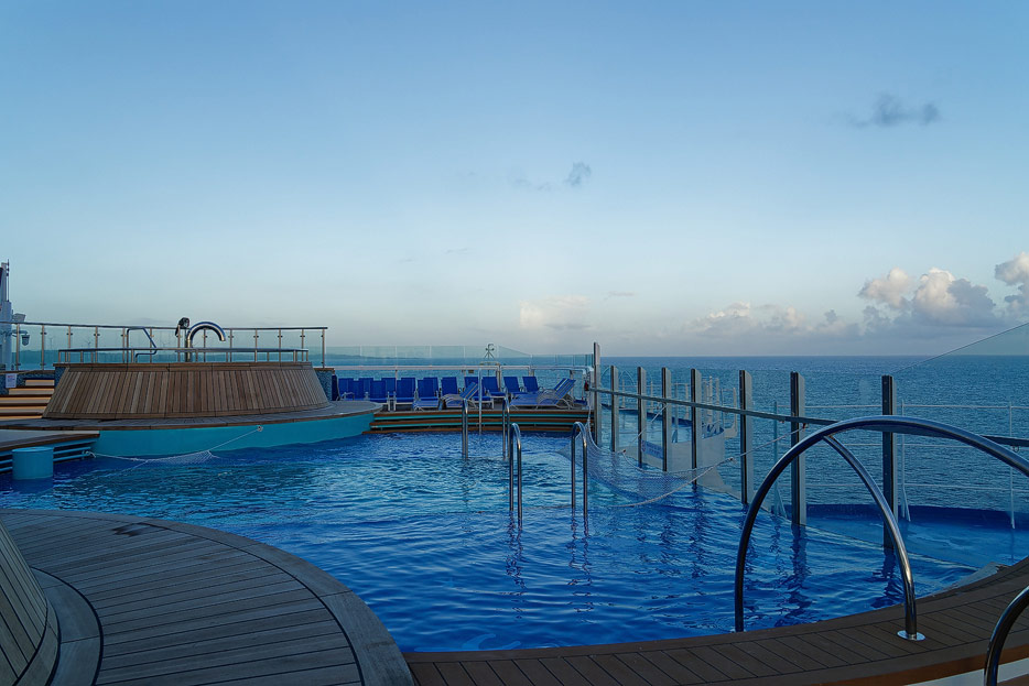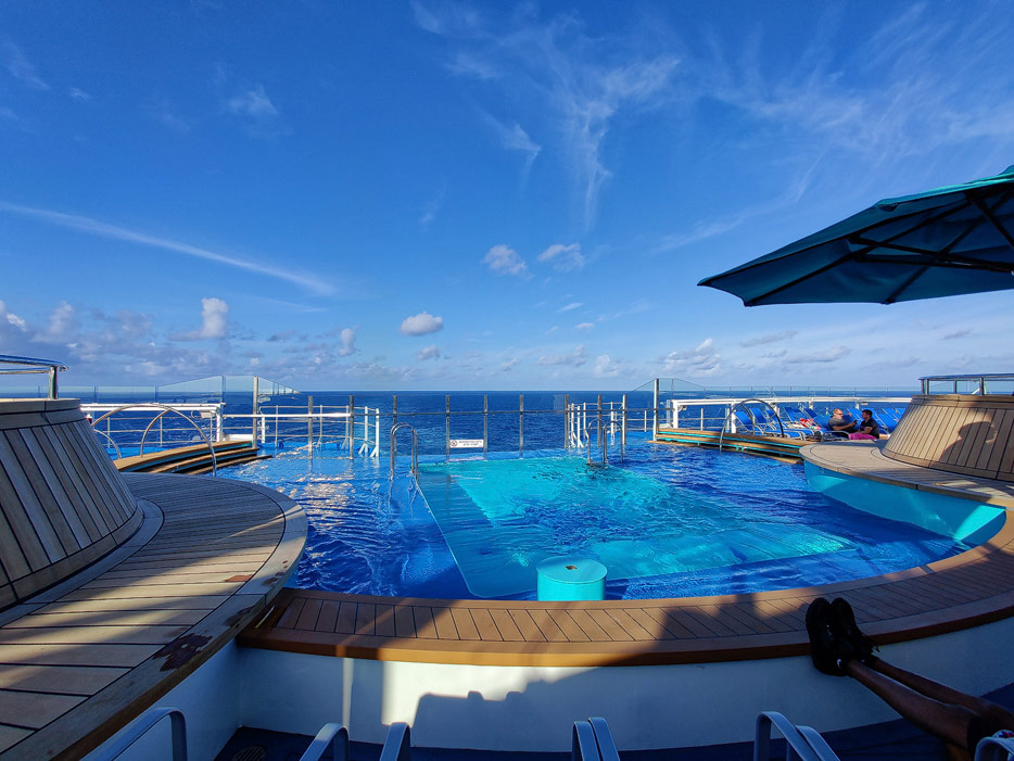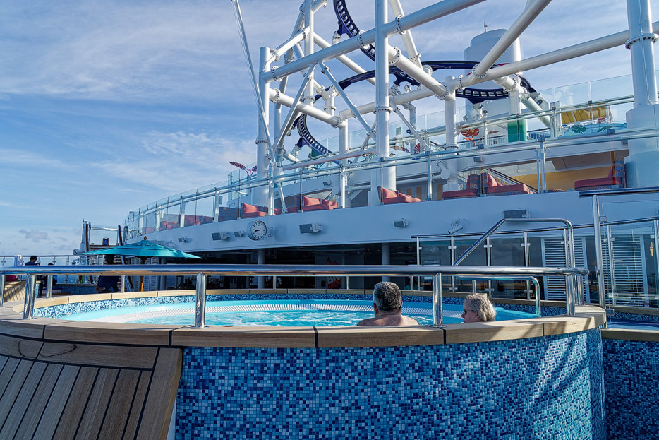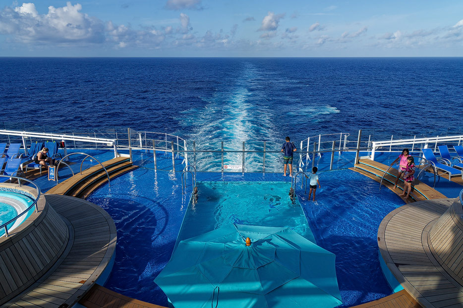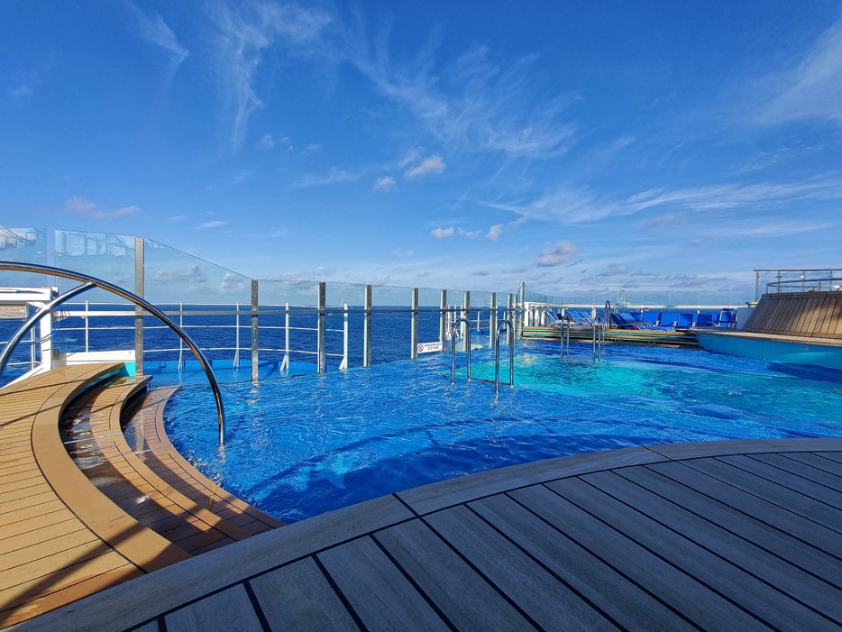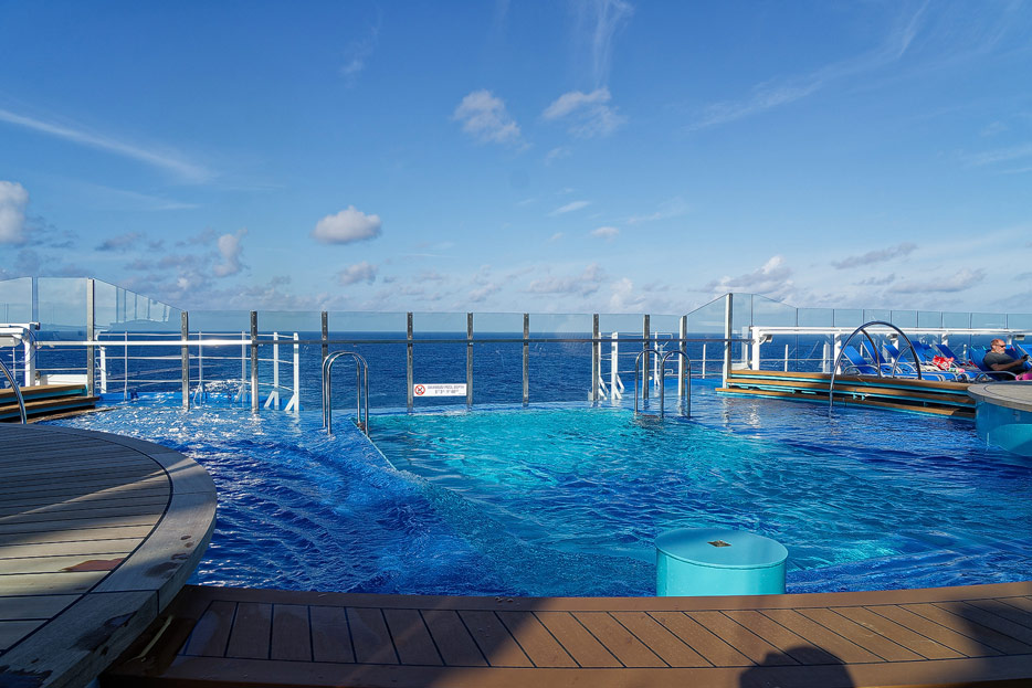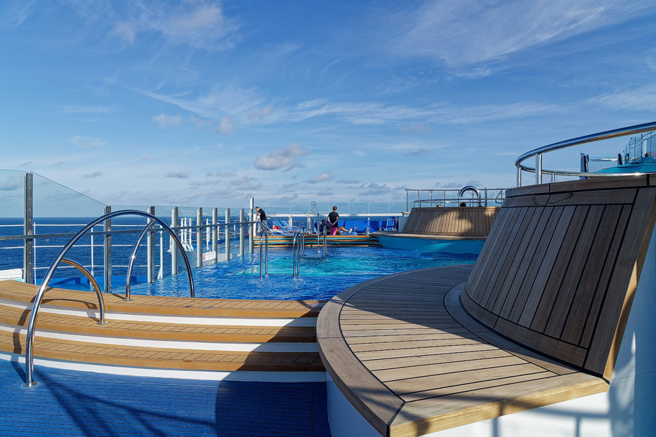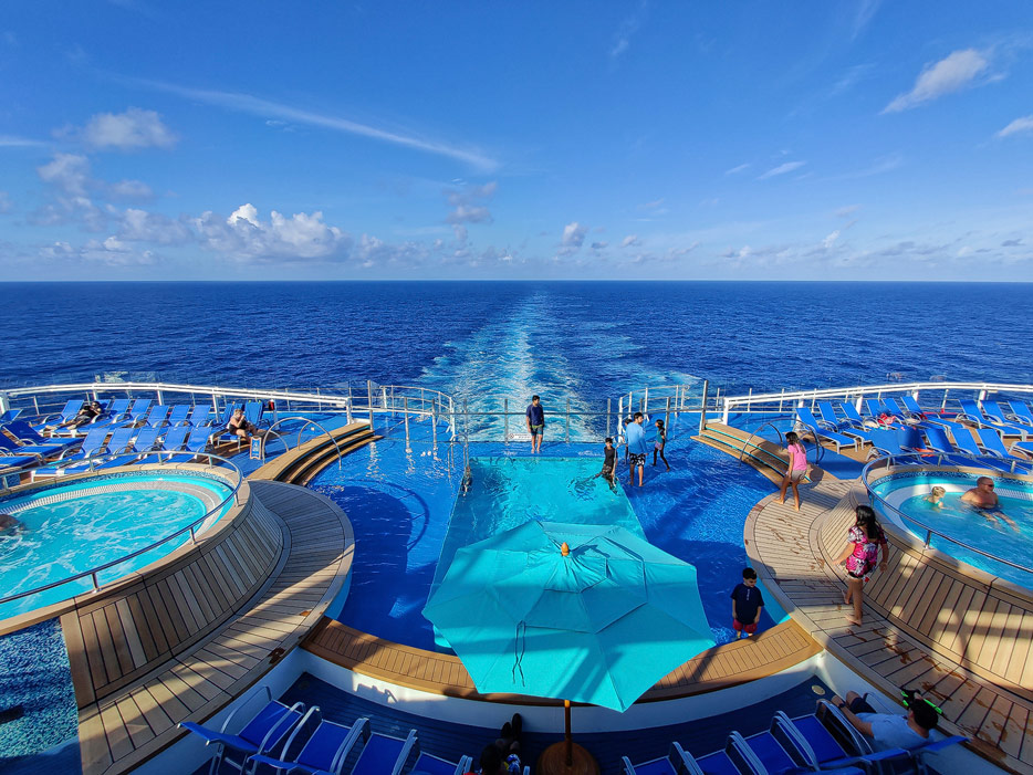 Bilder der Pools und Sonnendecks auf der Carnival Celebration inklusive des Erwachsenenbereichs Serenity Retreat und der beiden exklusiven Bereiche Loft 19 und The Lanai
