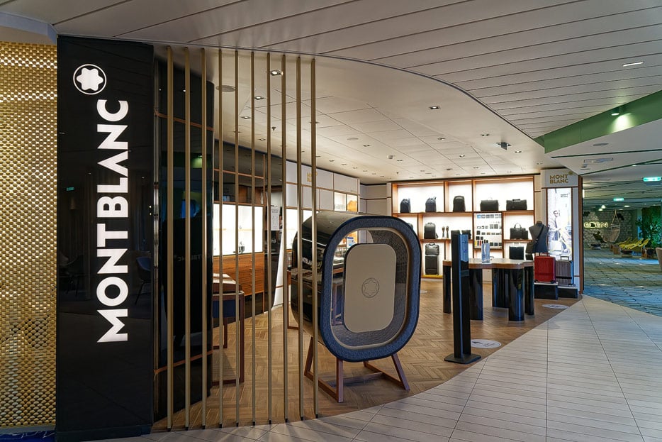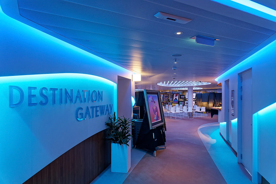 Bilder weiterer Bereiche der Celebrity Apex: Kunst, Treppenhaus, Aufzüge, Rezeption, Destination Gateway, Shops
