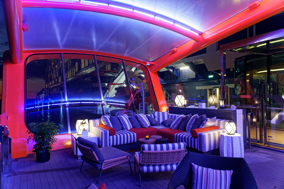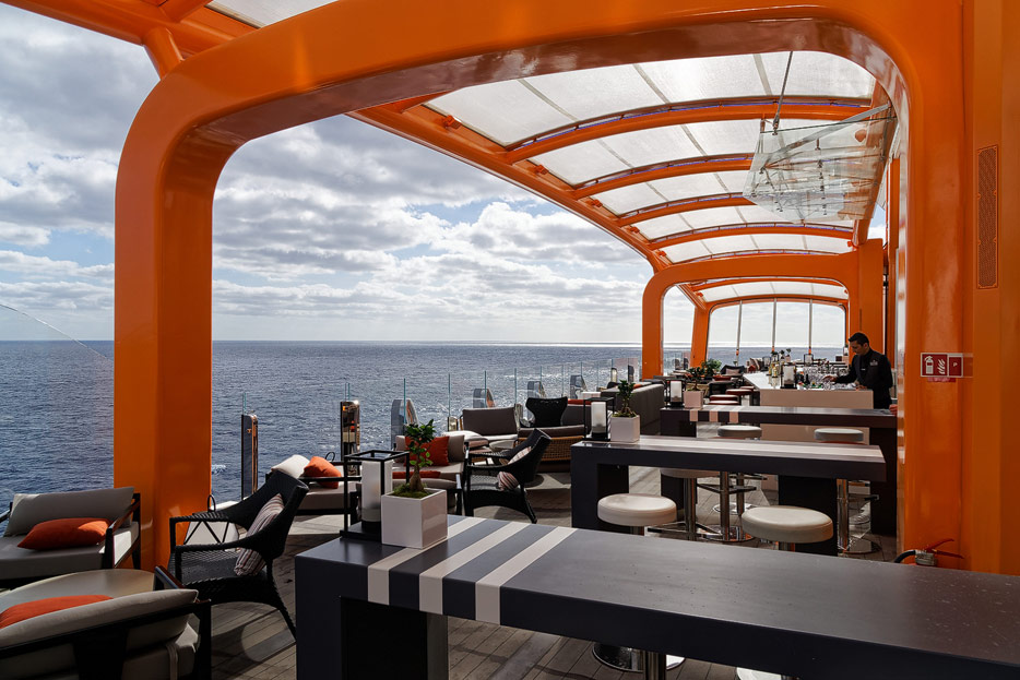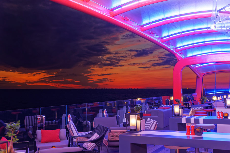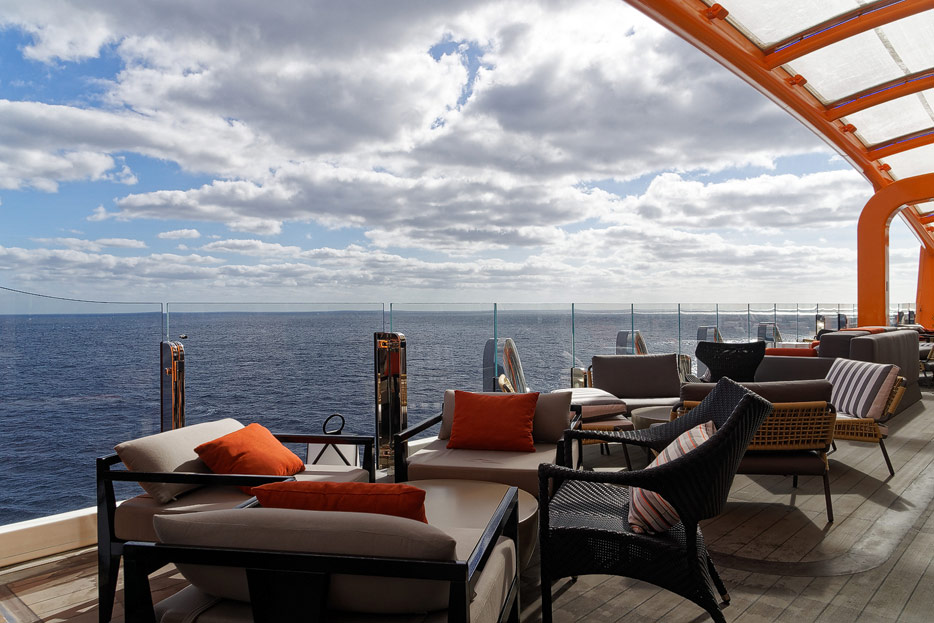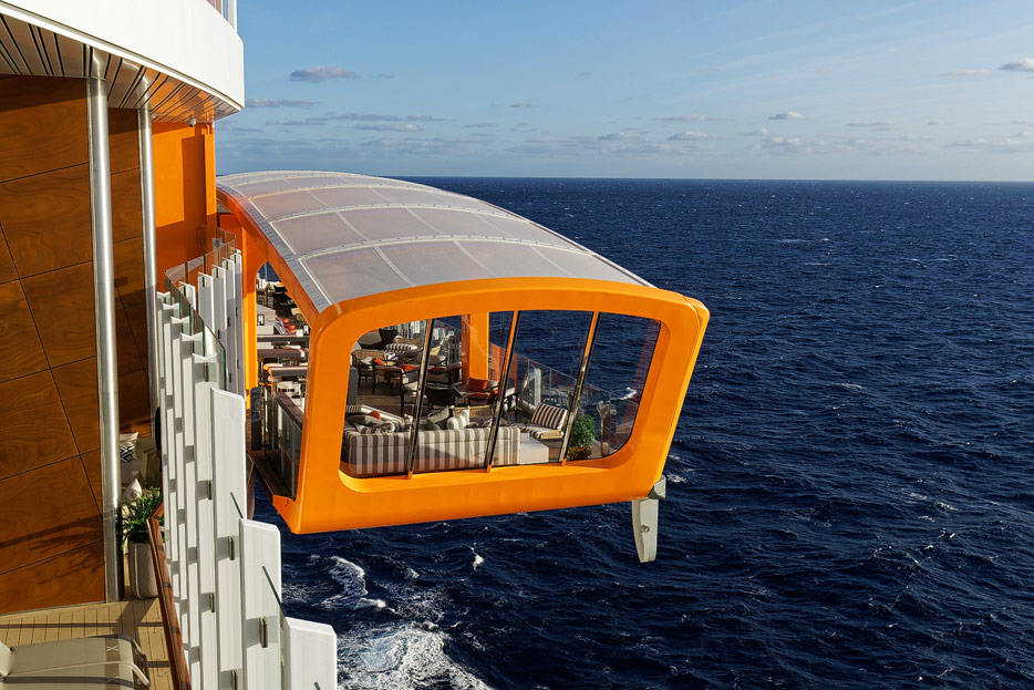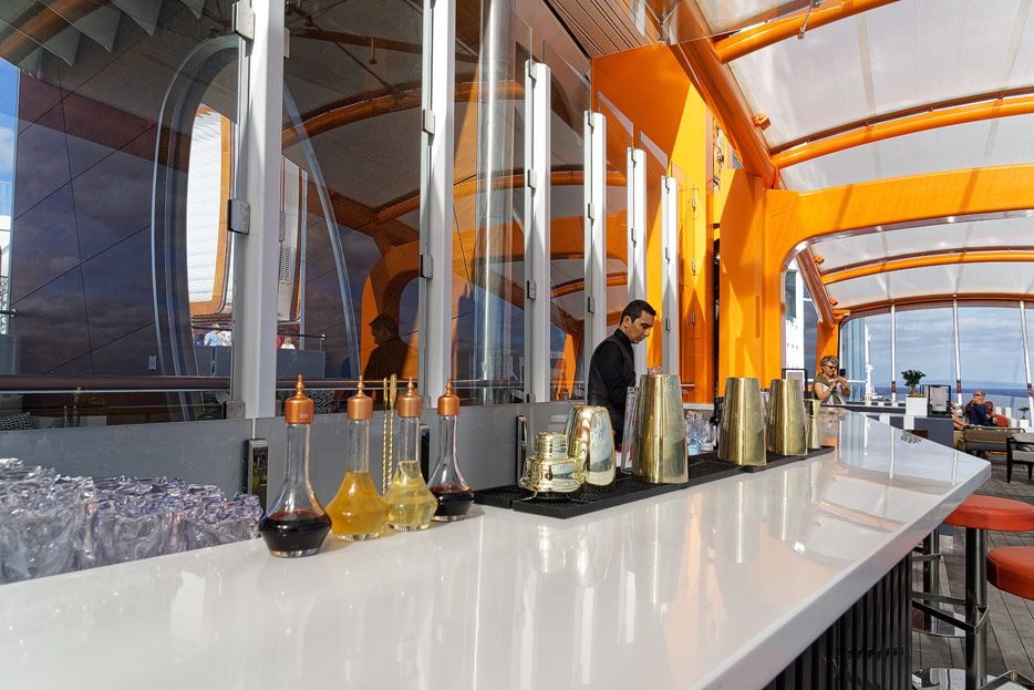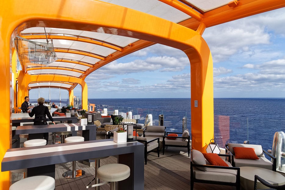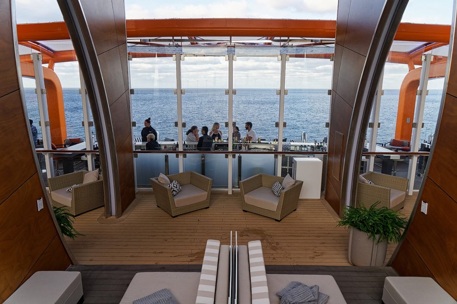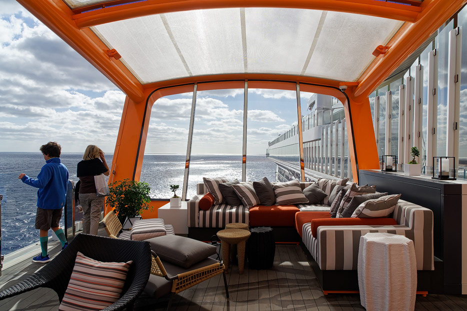Bilder von den Pools und Außendecks der Celebrity Edge (siehe auch: „The Retreat“ für das exklusive Suiten-Sonnendeck)