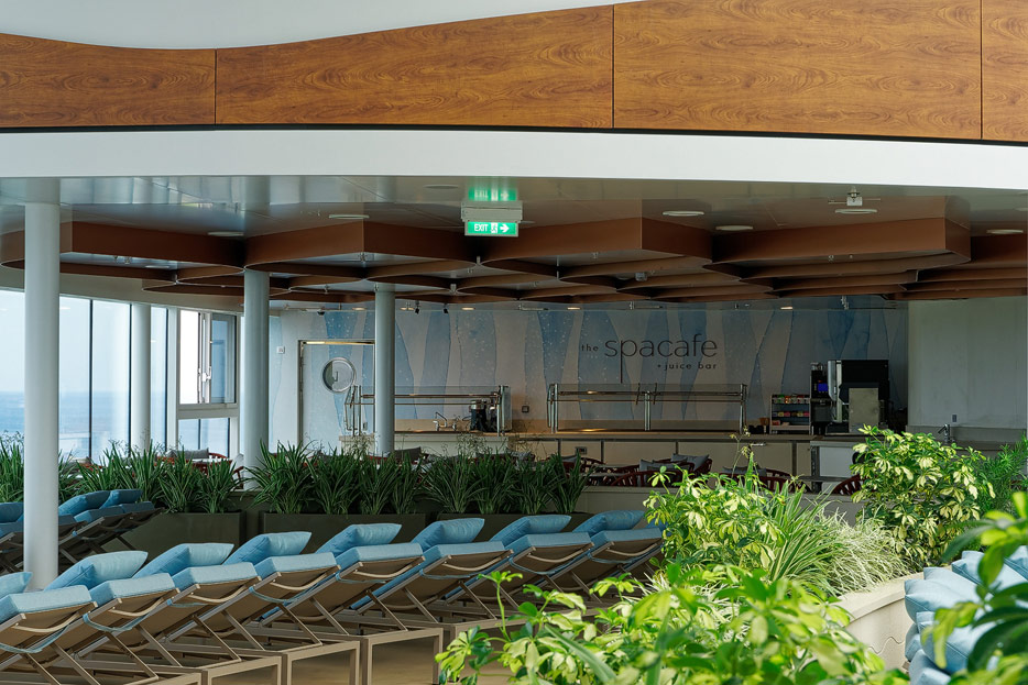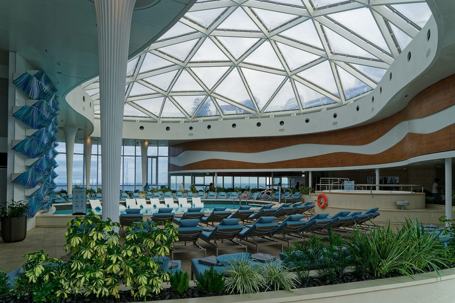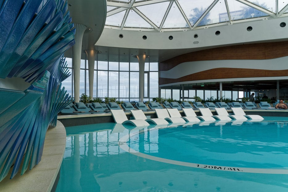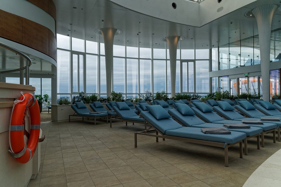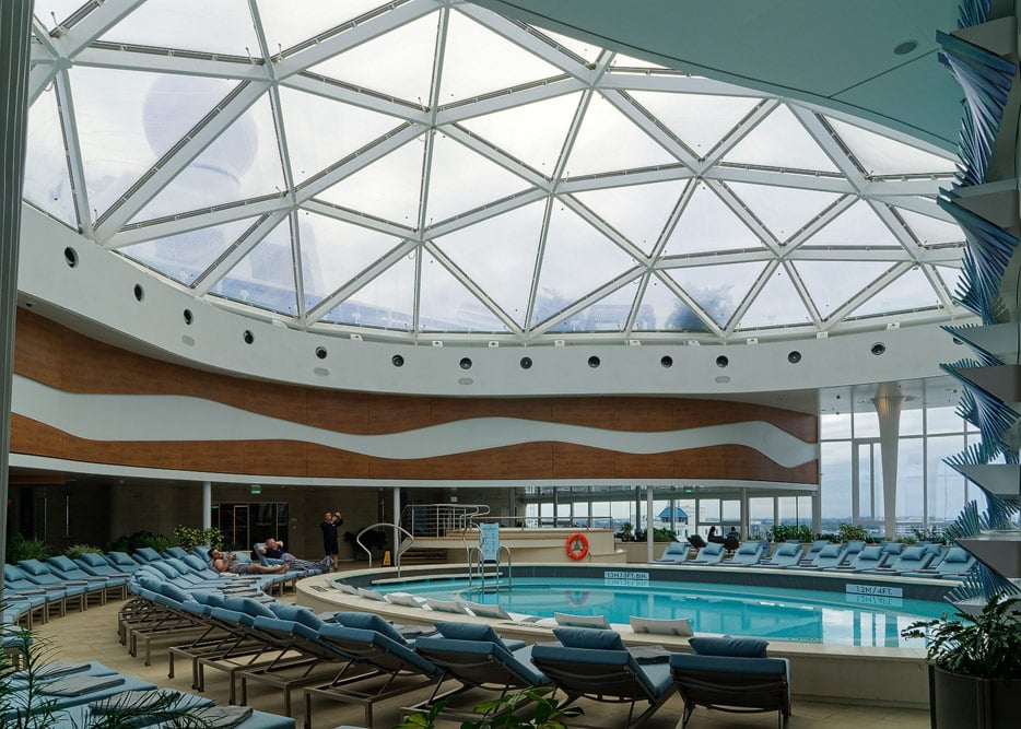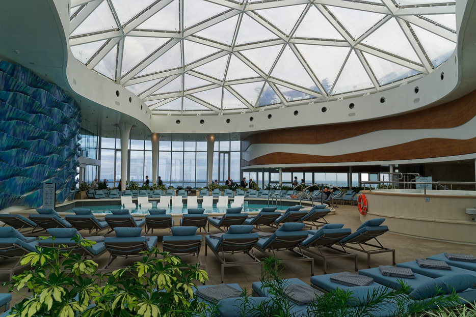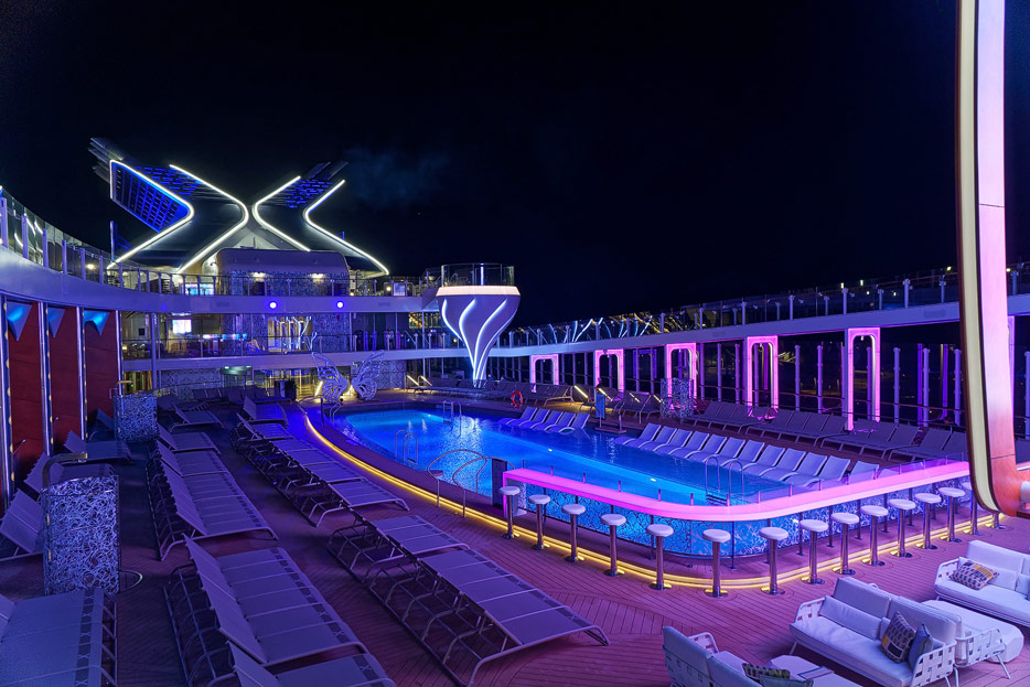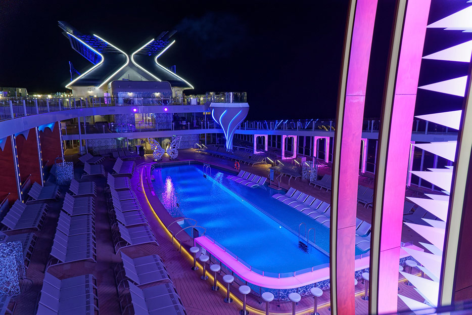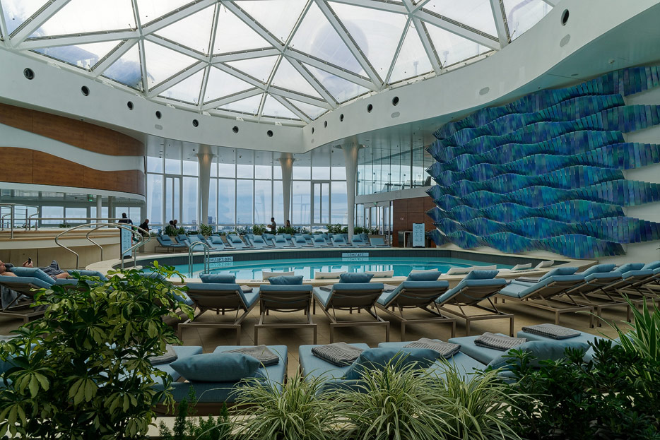 Bilder von den Pools und Außendecks der Celebrity Edge (siehe auch: „The Retreat“ für das exklusive Suiten-Sonnendeck)