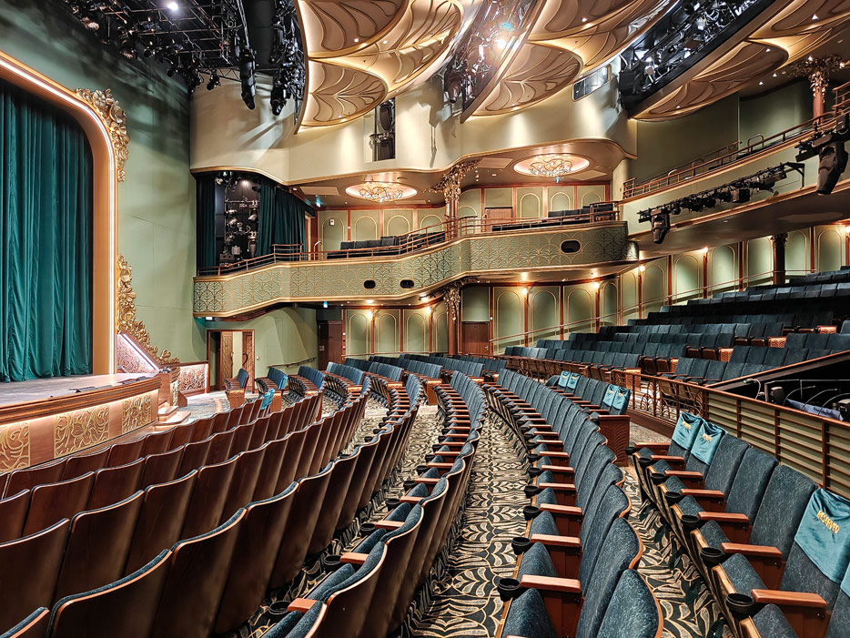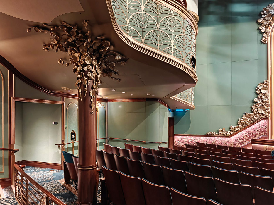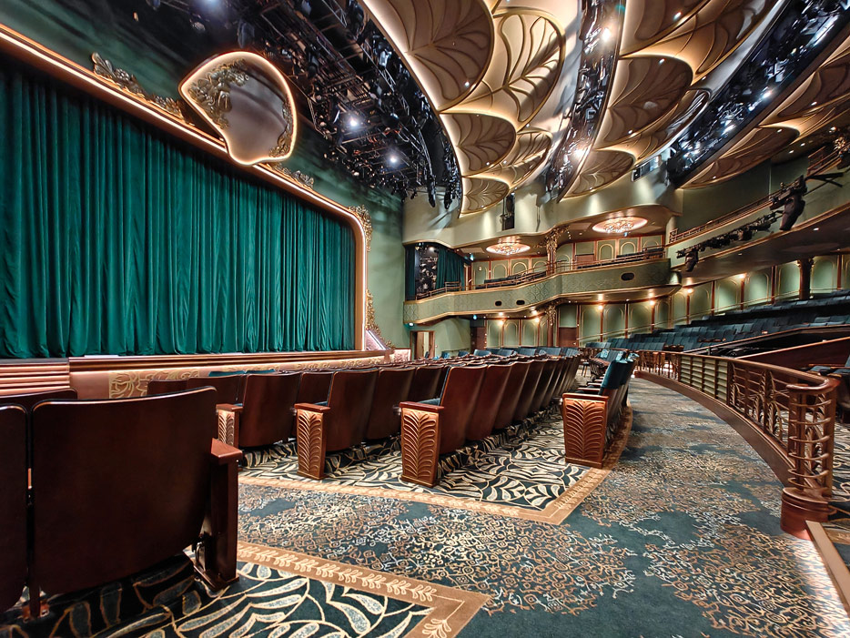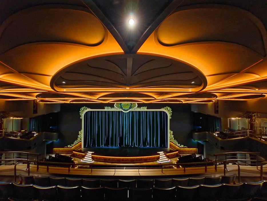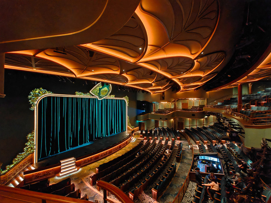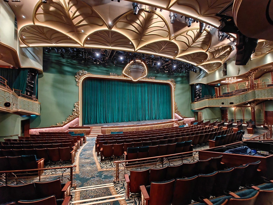 Bilder der Entertainment-Räumlichkeiten der Disney Treasure – Walt Disney Theatre, Sarabi Lounge, Cinema, Triton Lounge