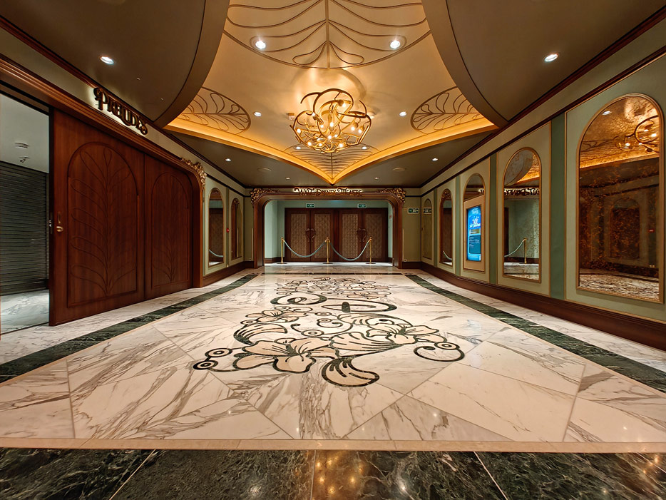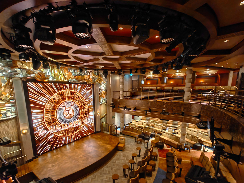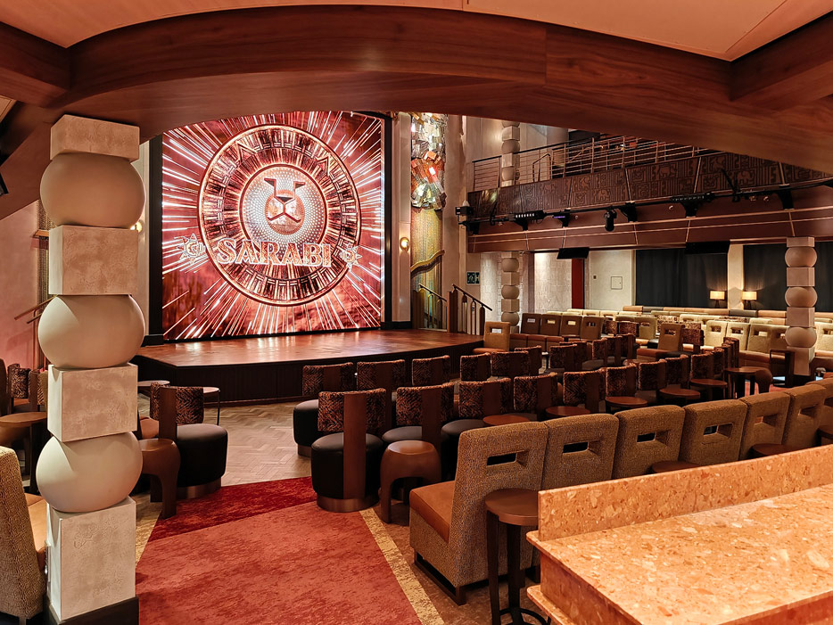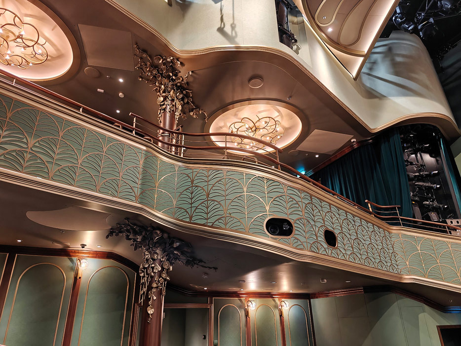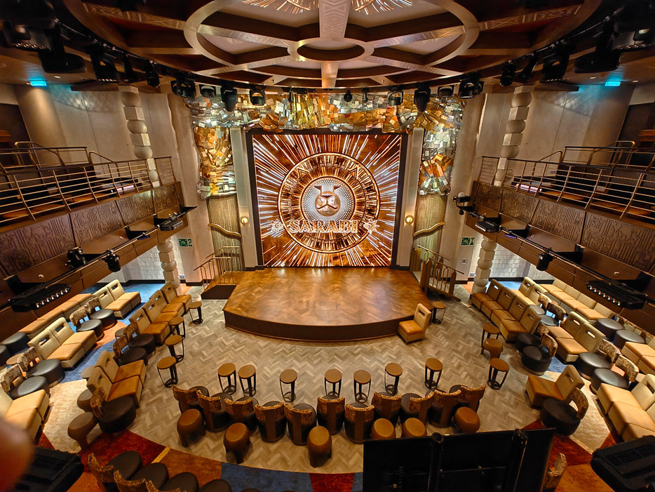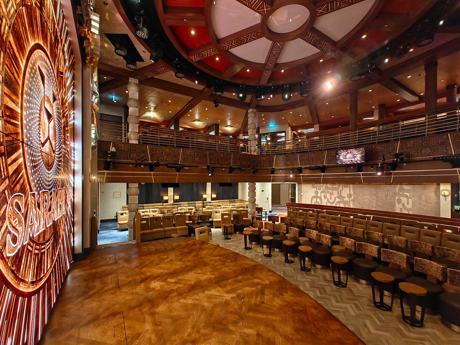 Bilder der Entertainment-Räumlichkeiten der Disney Treasure – Walt Disney Theatre, Sarabi Lounge, Cinema, Triton Lounge