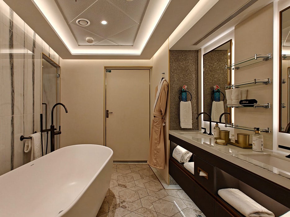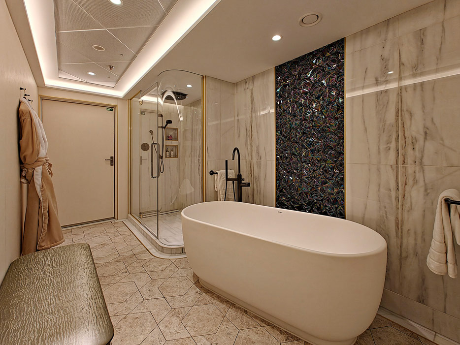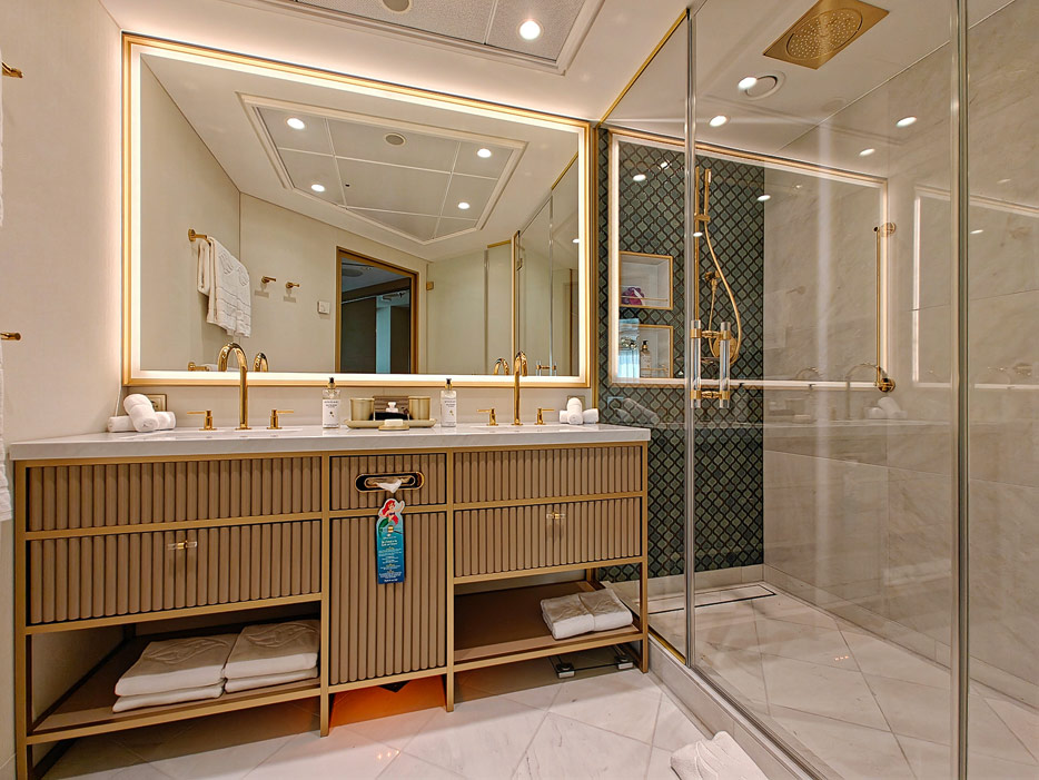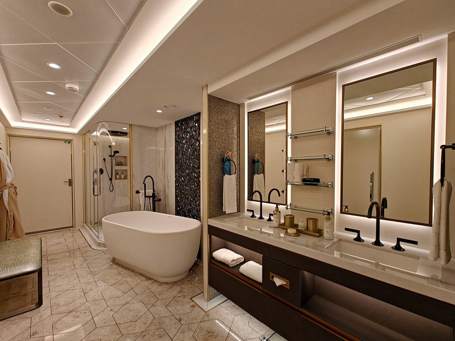 Bilder der Balkonkabine 6654 sowie einer Royal Suite und der Tomorrow Tower Suite auf der Disney Treasure