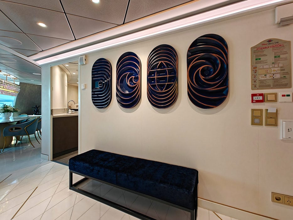 Bilder der Balkonkabine 6654 sowie einer Royal Suite und der Tomorrow Tower Suite auf der Disney Treasure