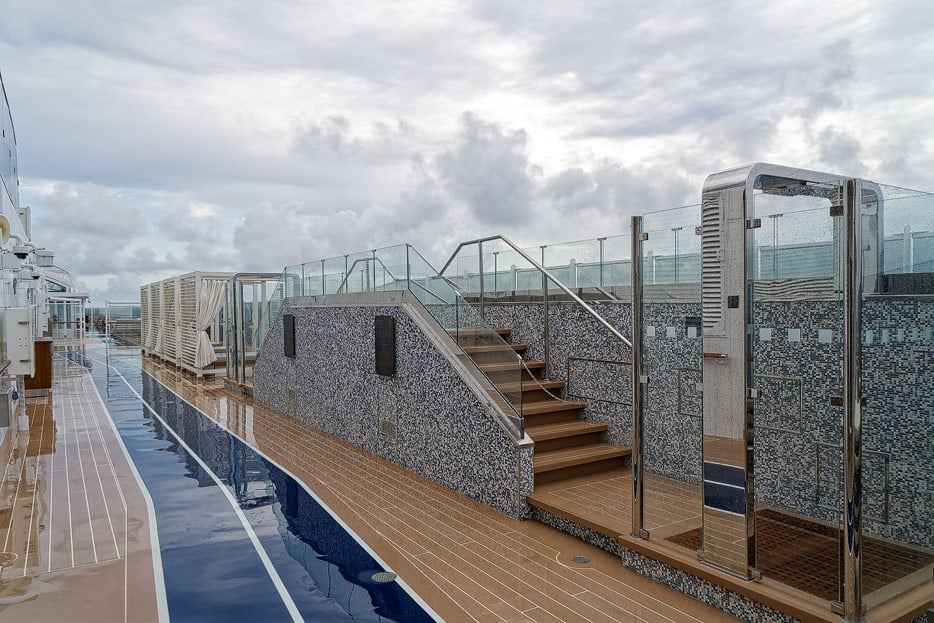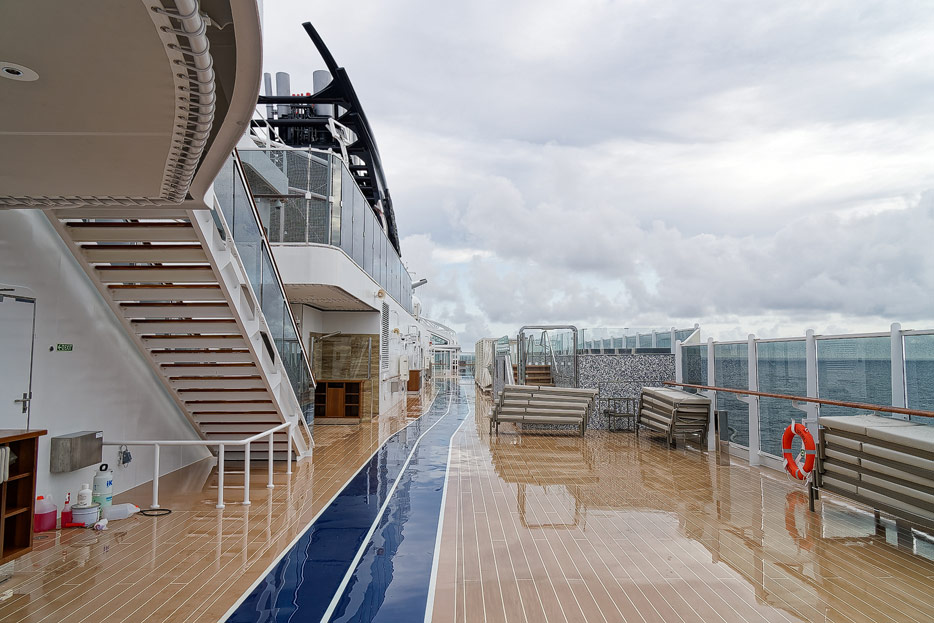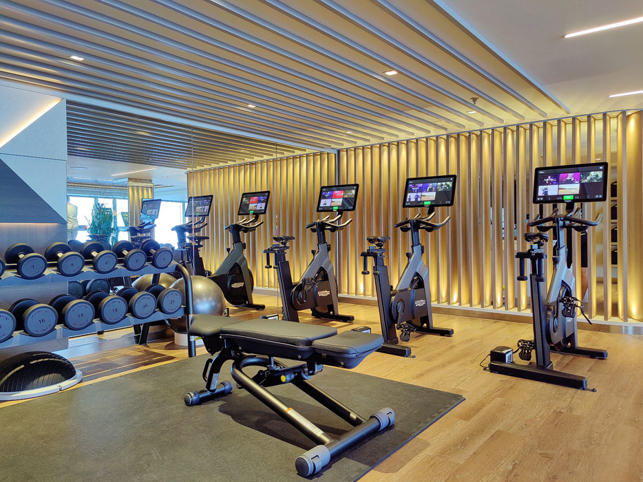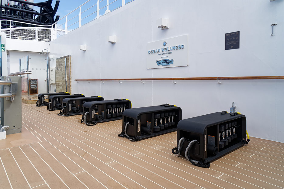 Bilder des Spa, Wellness-Bereichs, Fitness-Studios, Joggingbahn und Open-Air-Fitness auf der Explora I