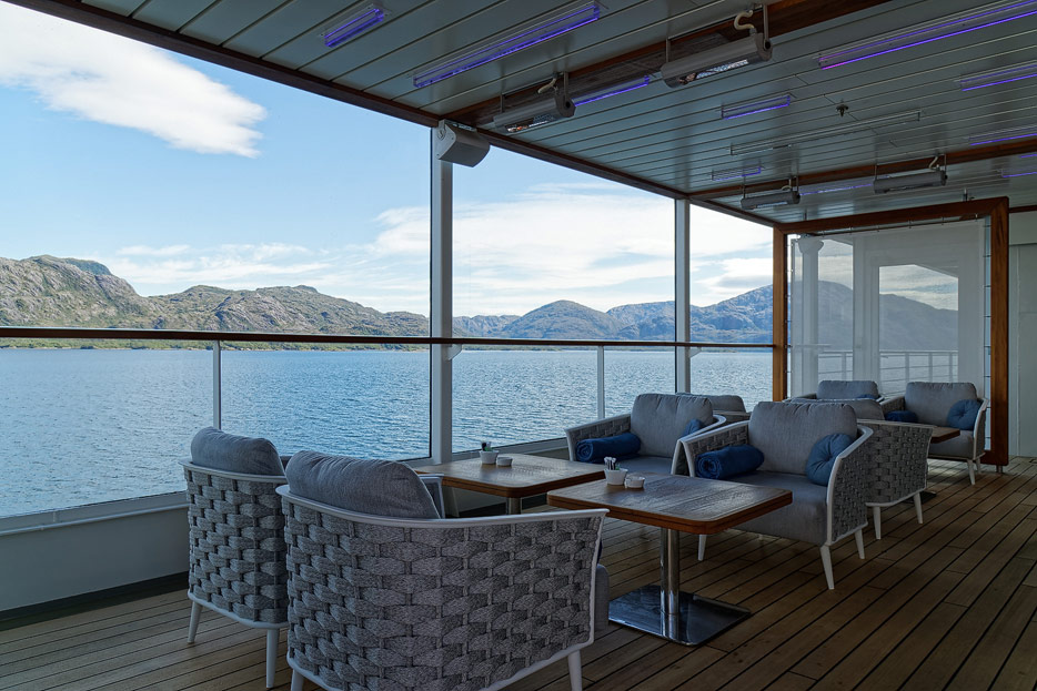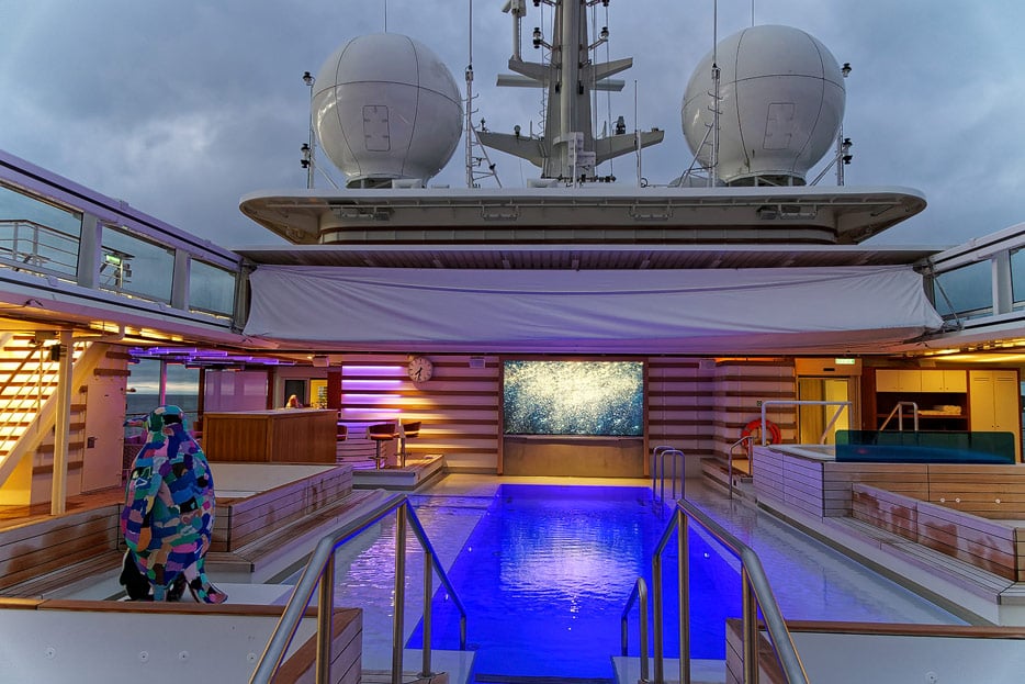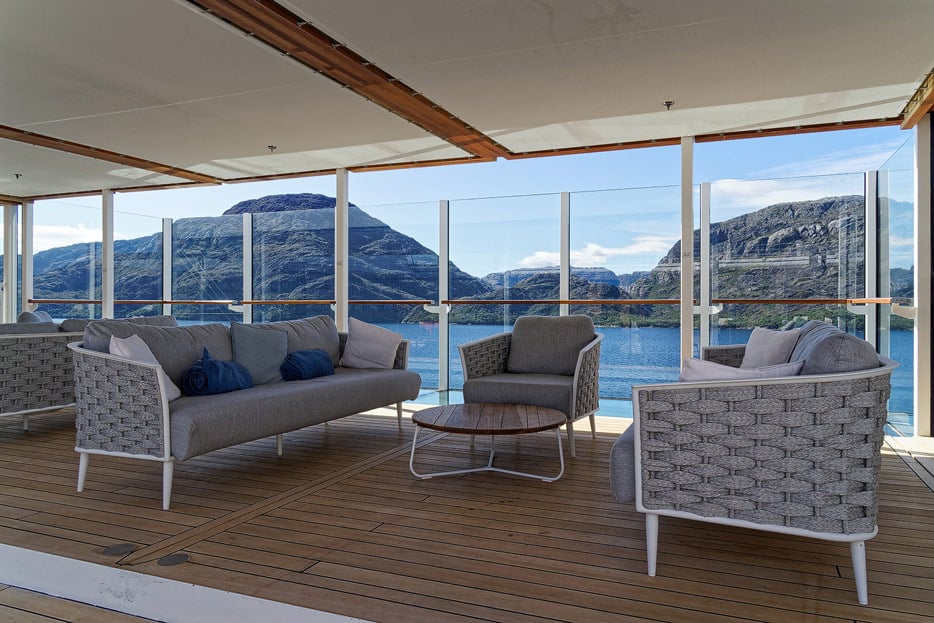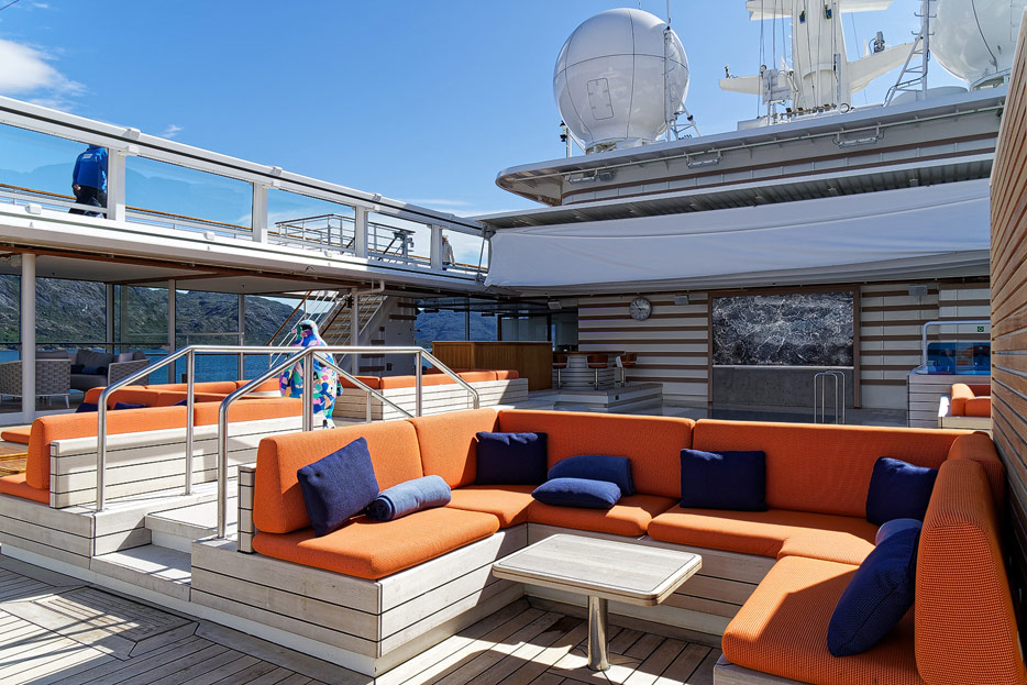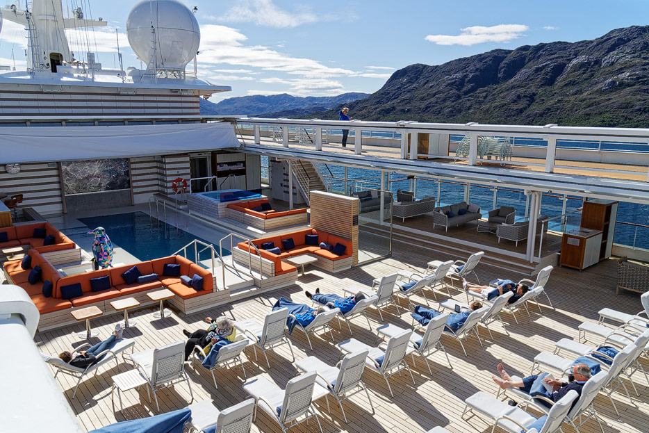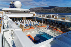 Bilder des Pooldecks, der Sonnendecks und der ausfahrbaren Glasbalkone der Hanseatic Nature
