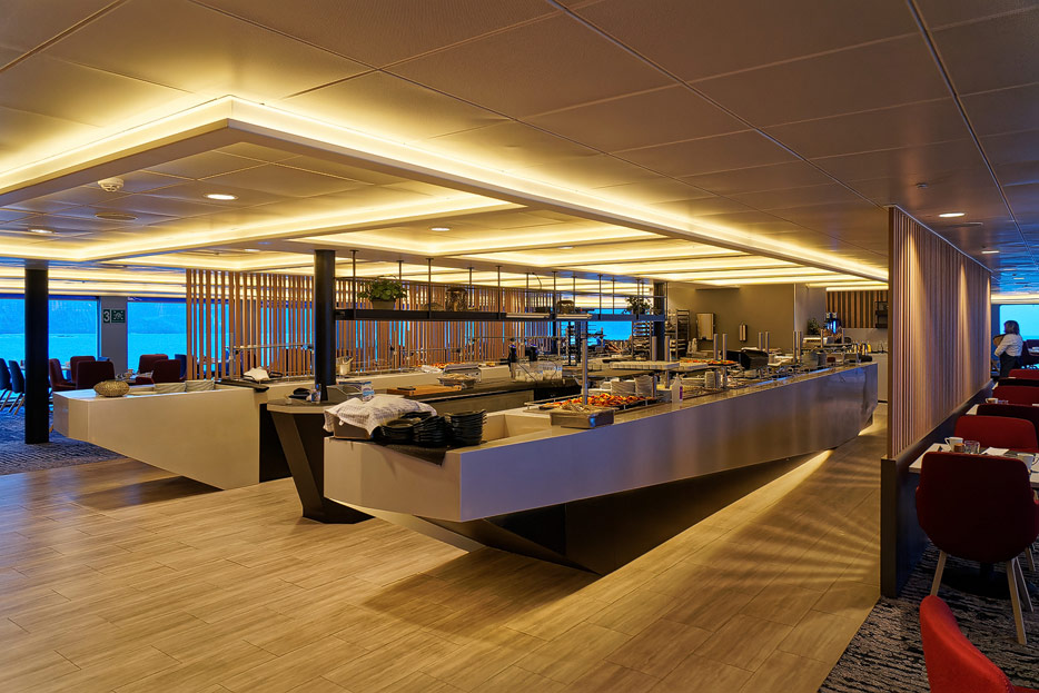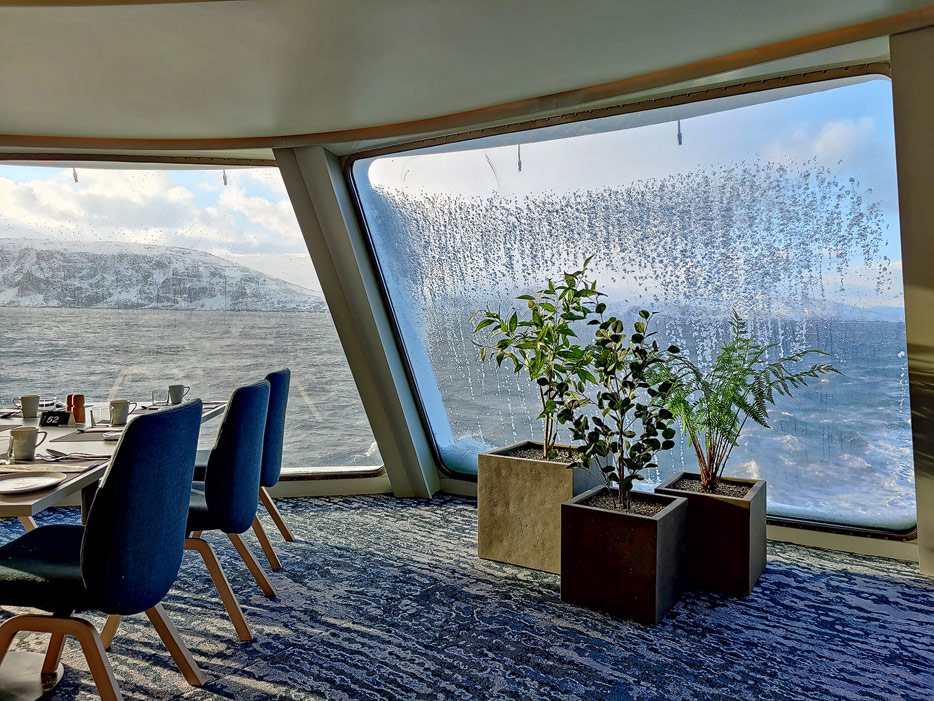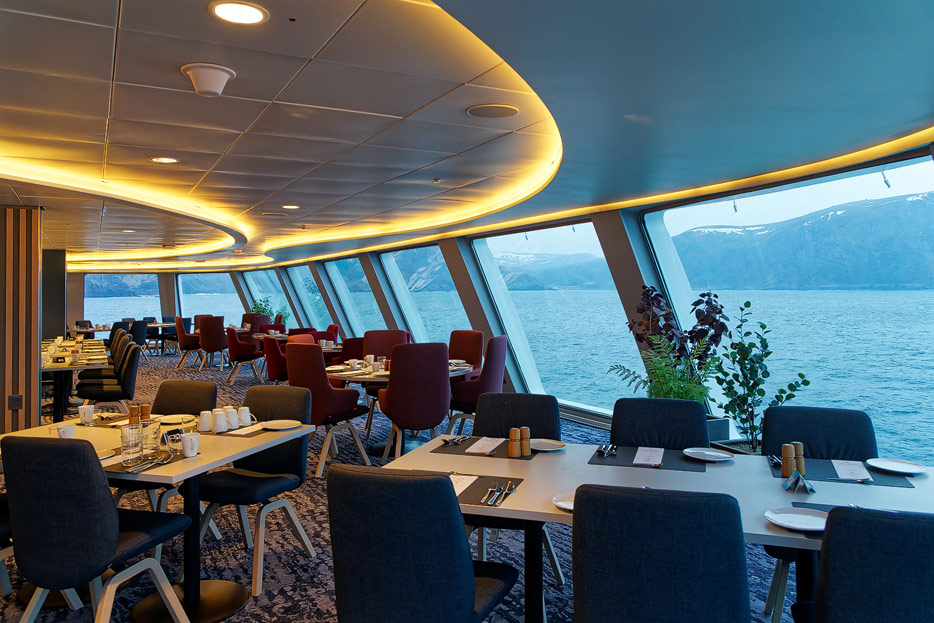 Bilder der beiden Restaurants und des Cafés der Havila Capella