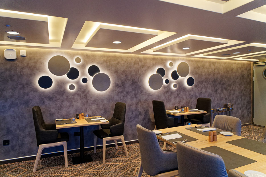 Bilder der beiden Restaurants und des Cafés der Havila Capella