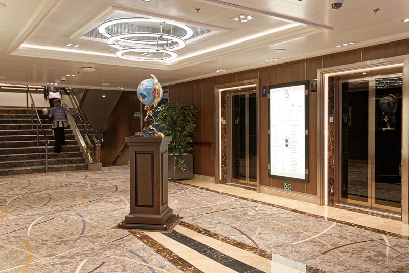 Sonstige Bereiche auf der Koningsdam, Holland America Line – Atrium, Rezeption, Shops, Casino, Kids Club, Theater, Treppenhäuser, Kunst