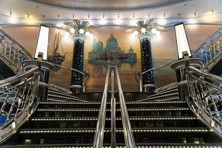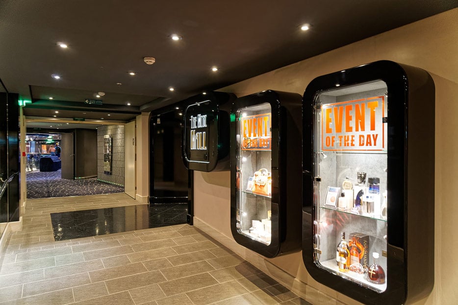Sonstige Bereiche auf der MSC Divina: Casino, Shops, Konferenzraum, Theater, Spielcasino, Virtual World, Treppen und Aufzüge, Kunstgalerie