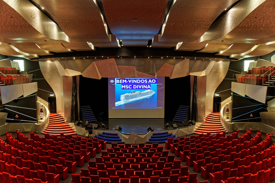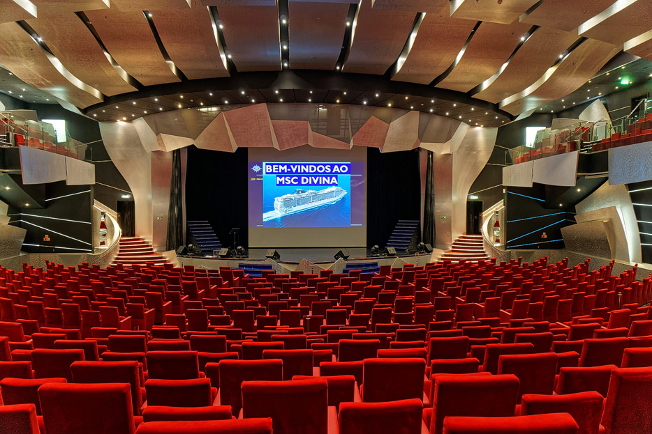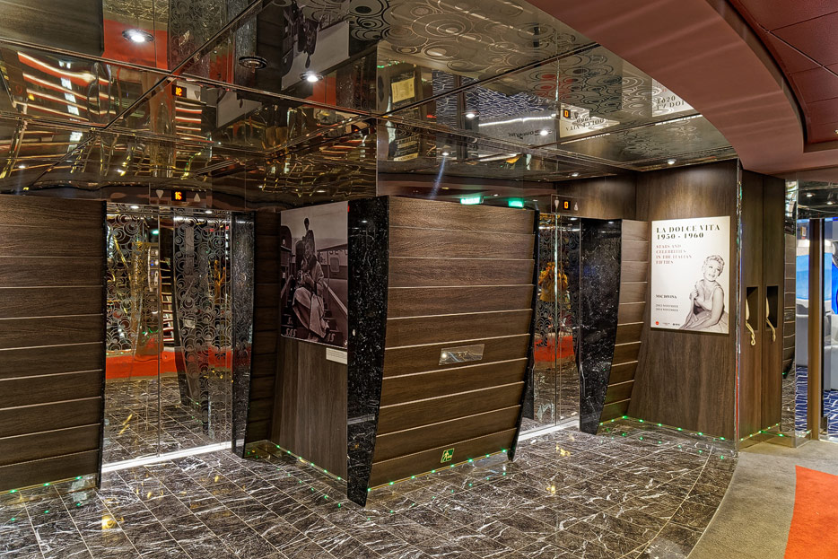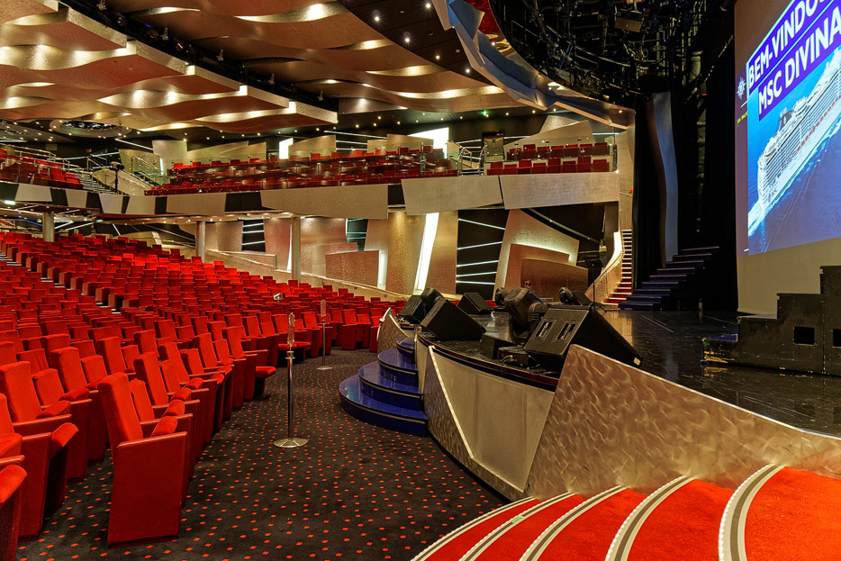 Sonstige Bereiche auf der MSC Divina: Casino, Shops, Konferenzraum, Theater, Spielcasino, Virtual World, Treppen und Aufzüge, Kunstgalerie