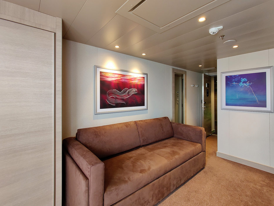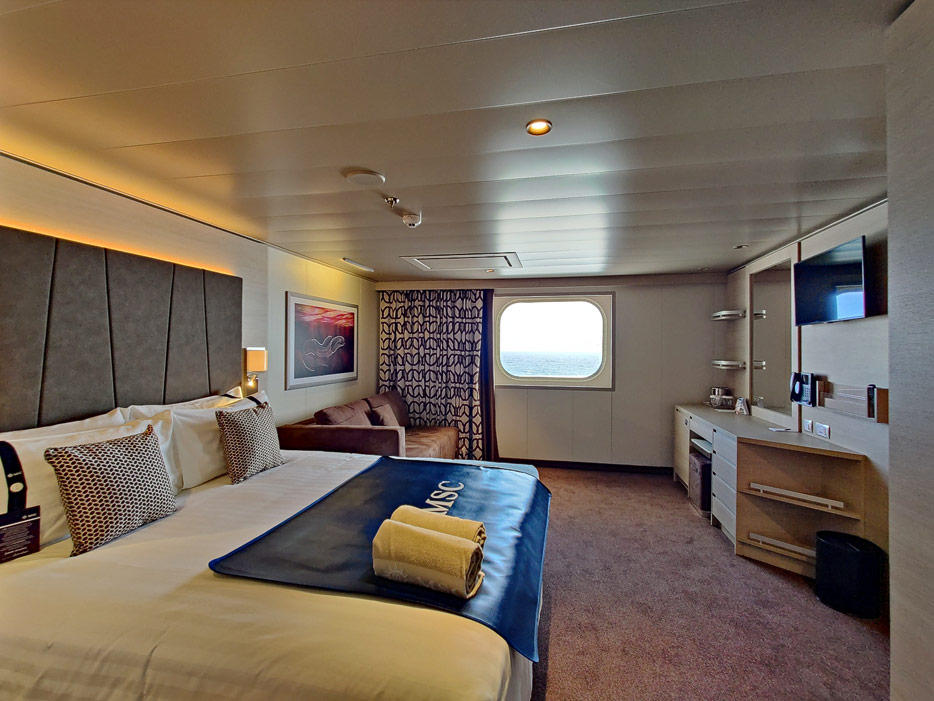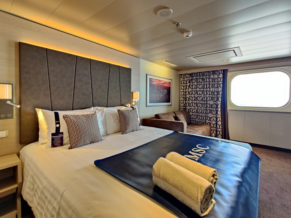 Bilder zahlreicher Kabinen- und Suiten-Typen auf der MSC Euribia inklusive MSC Yacht Club