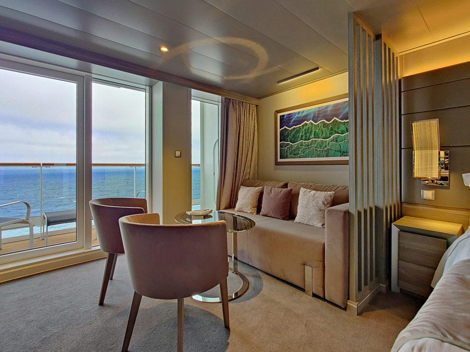 Bilder zahlreicher Kabinen- und Suiten-Typen auf der MSC Euribia inklusive MSC Yacht Club