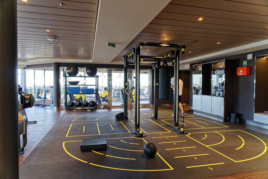Bilder des Spa und der Thermal Suite, des Fitness-Studios und der „Sportplex“-Halle auf der MSC Grandiosa