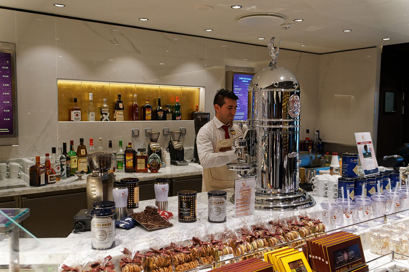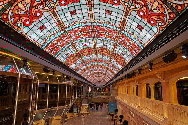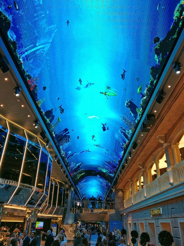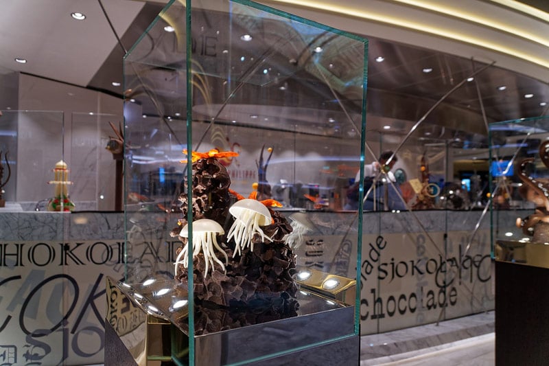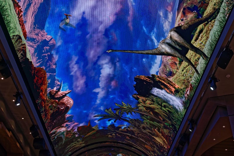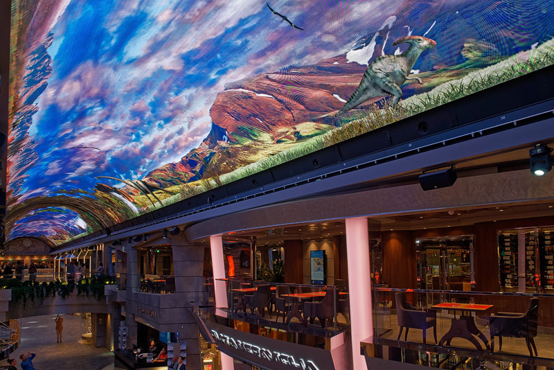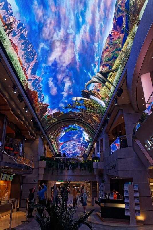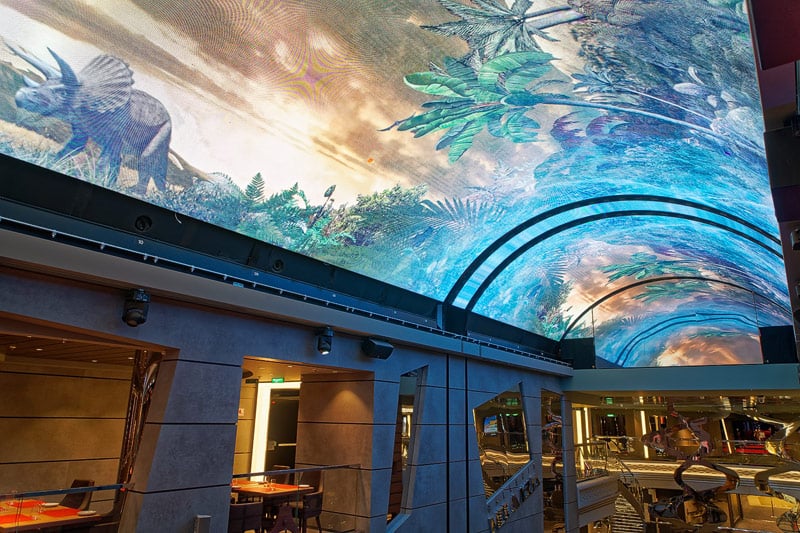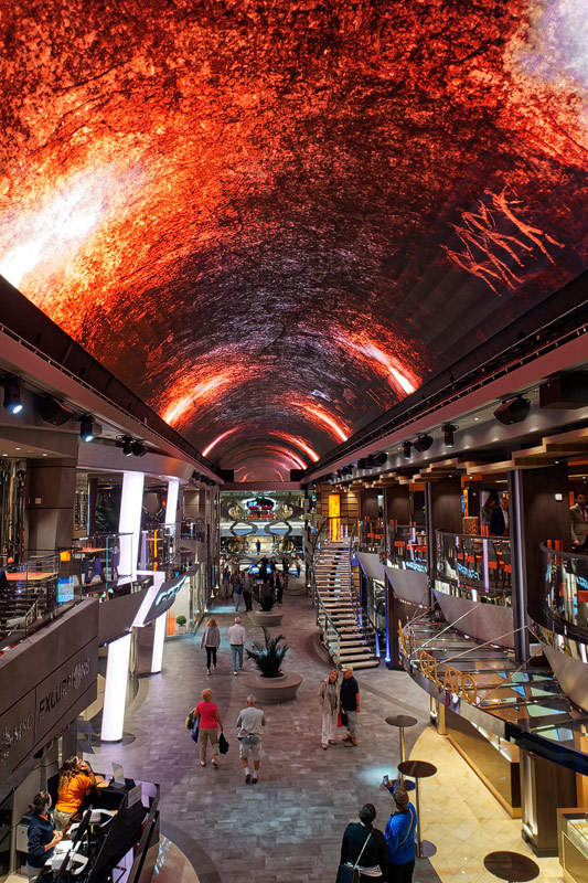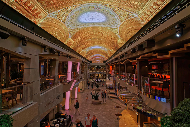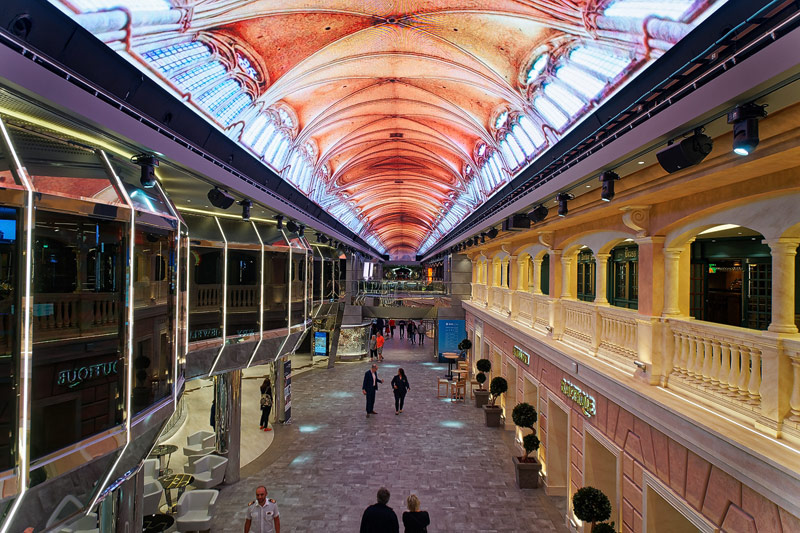 Die „Galleria“ der MSC Meraviglia inklusive der Spezialitätenrestaurants entlang der Galleria-Promenade auf Deck 6 und 7