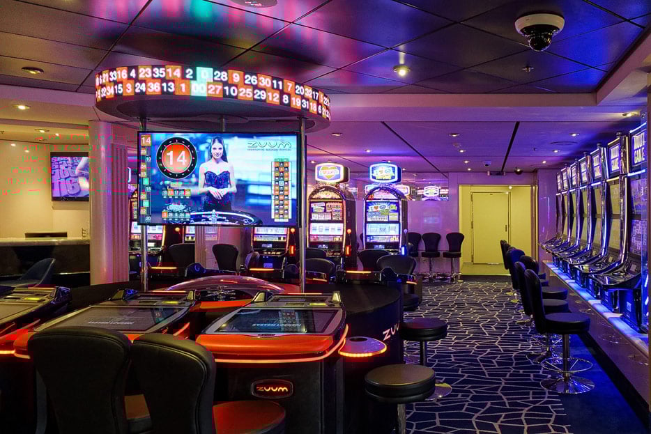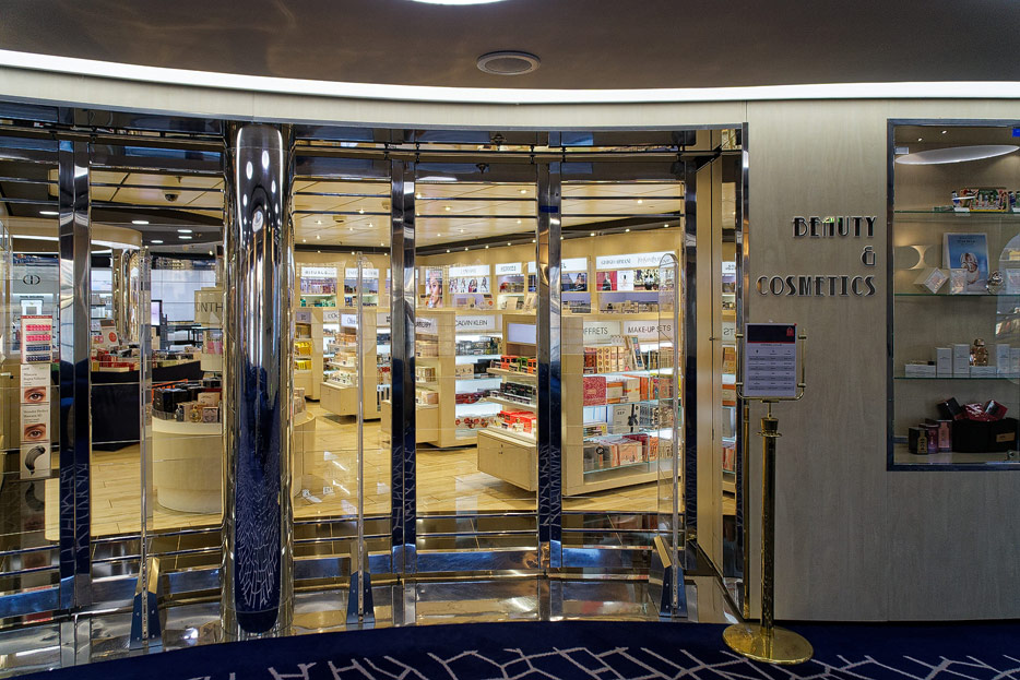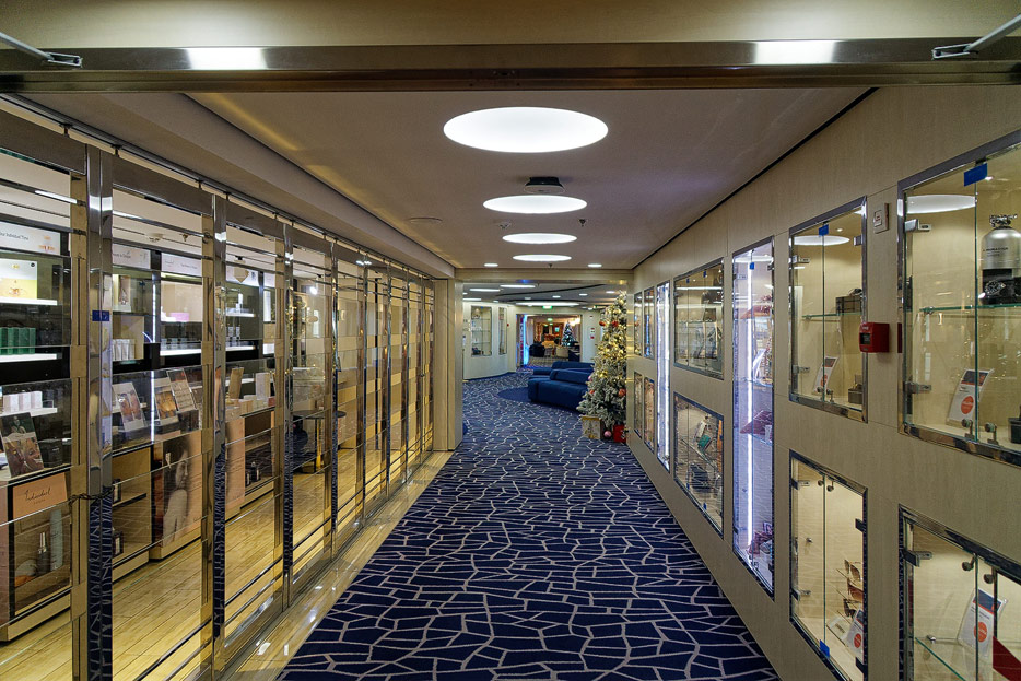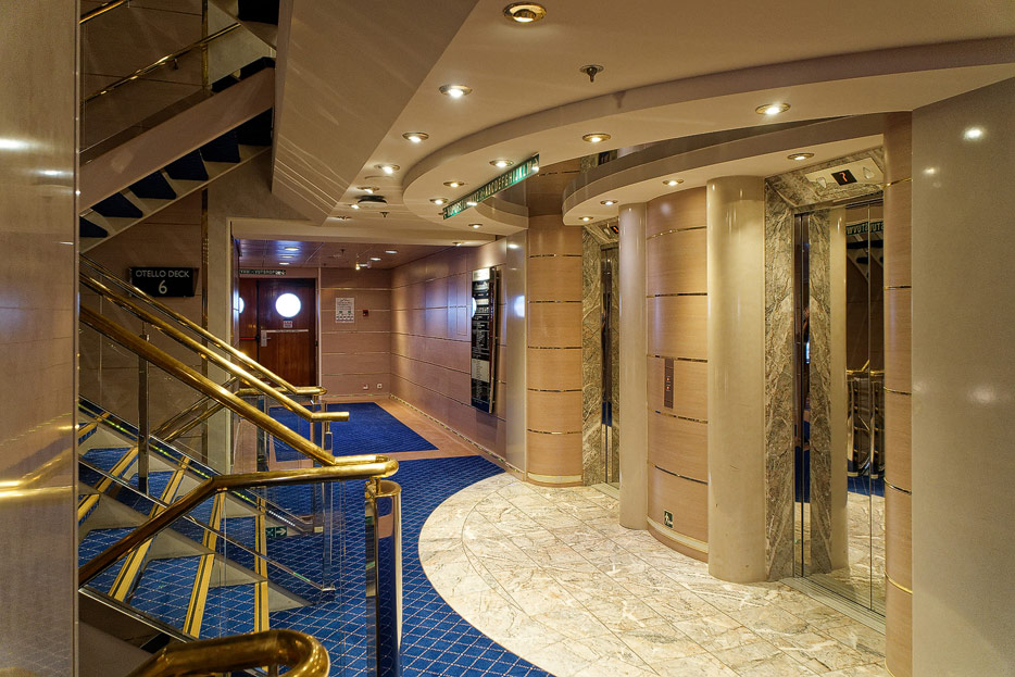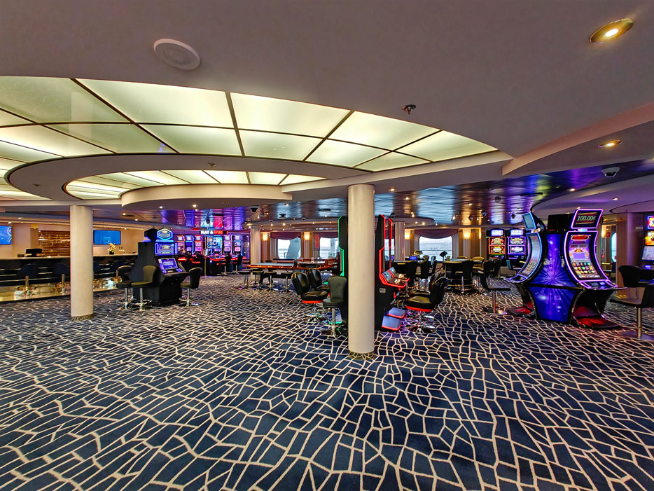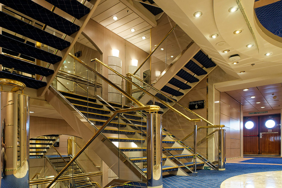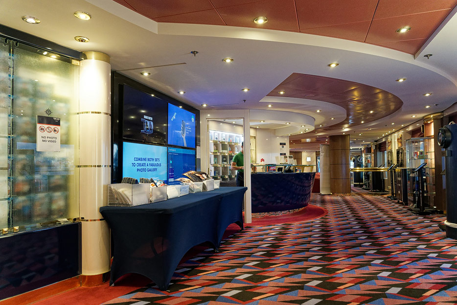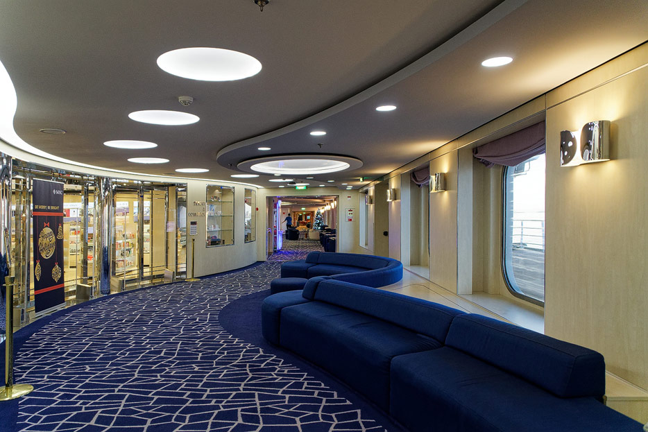 Bilder sonstiger Bereiche auf der MSC Opera: Atrium, Internet-Cafe und Bibliothek, Casino, Shops, Treppenhaus