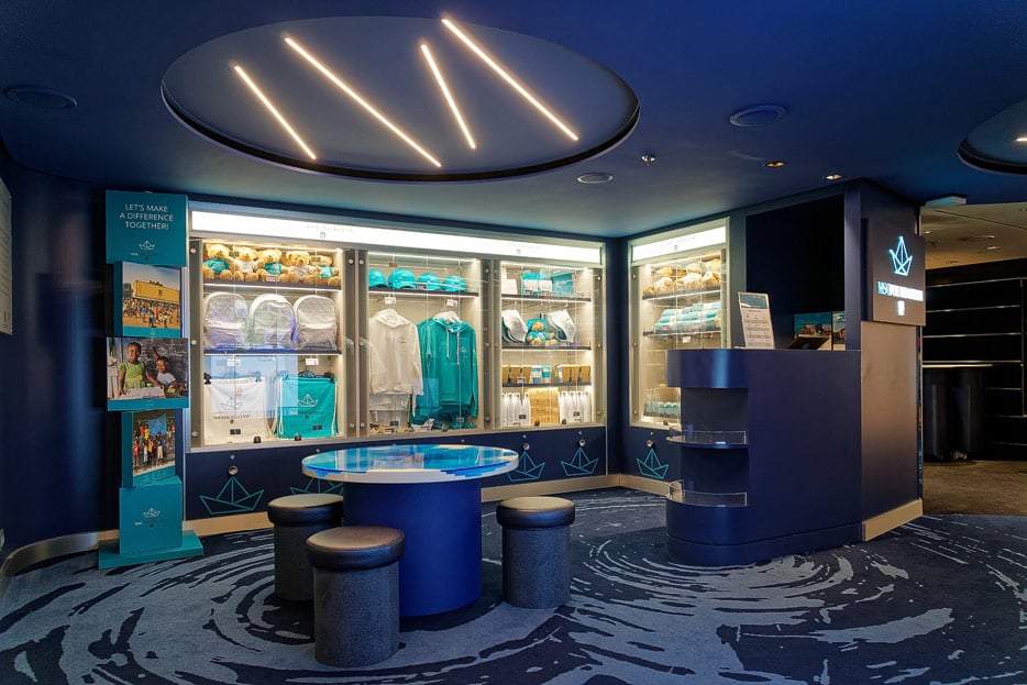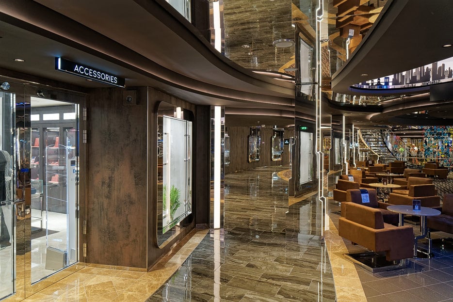 Sonstige Bereiche der MSC Seashore: Shopping & Liberty Plaza, Treppen, Aufzüge, MSC Foundation
