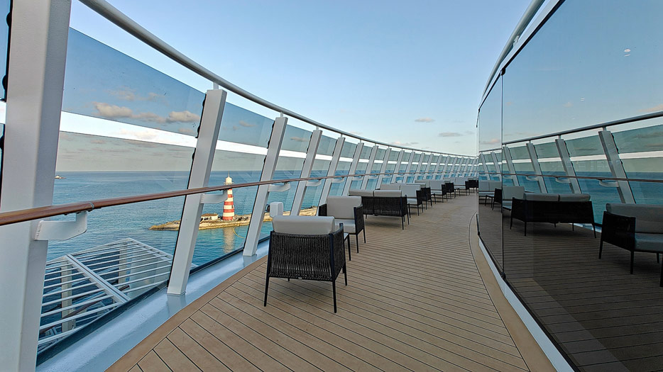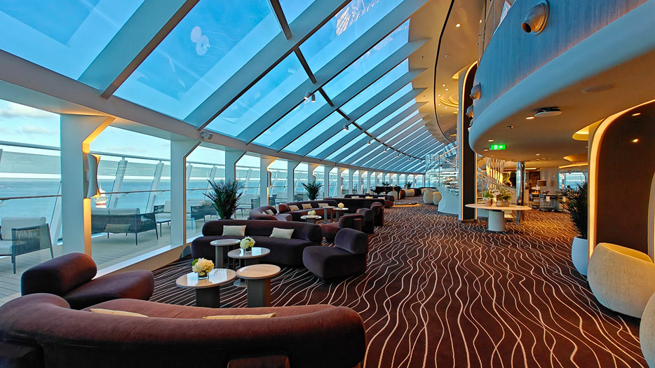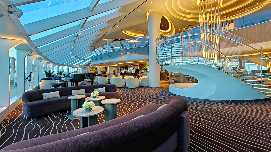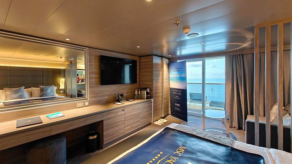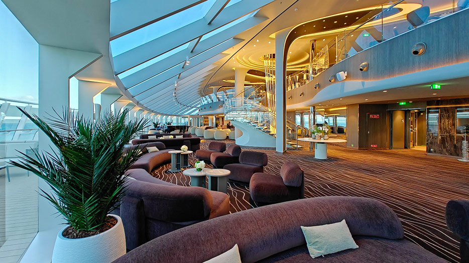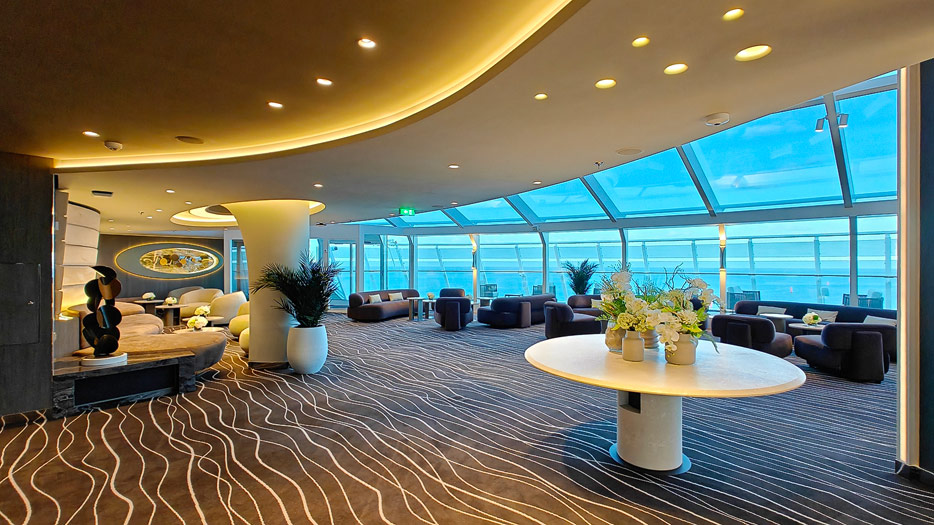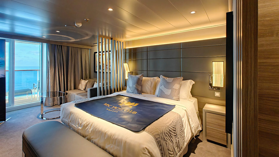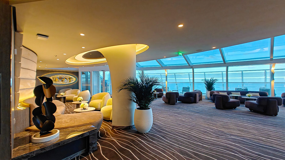 Bilder aus dem Yacht Club der MSC World America, dem exklusiven „Schiff-im-Schiff“-Suitenbereich