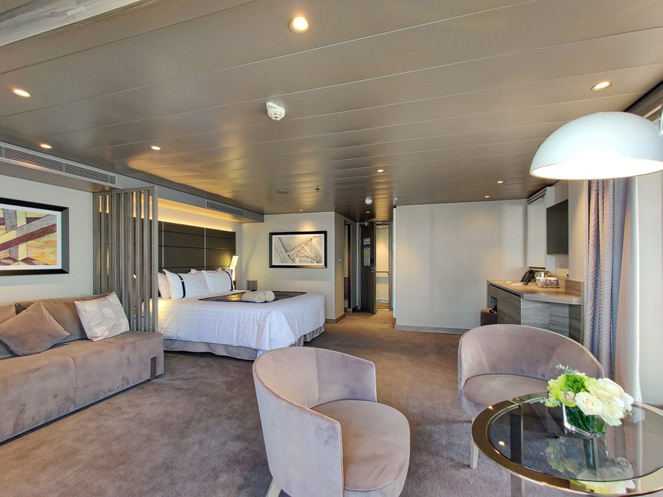 Bilder aus zahlreichen Kabinen- und Suiten-Kategorien auf der MSC World Europa
