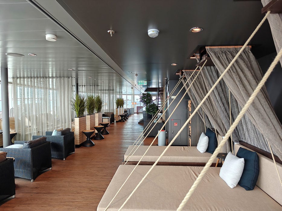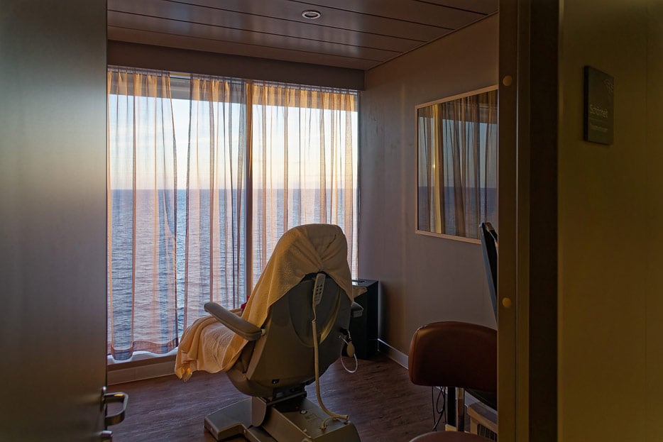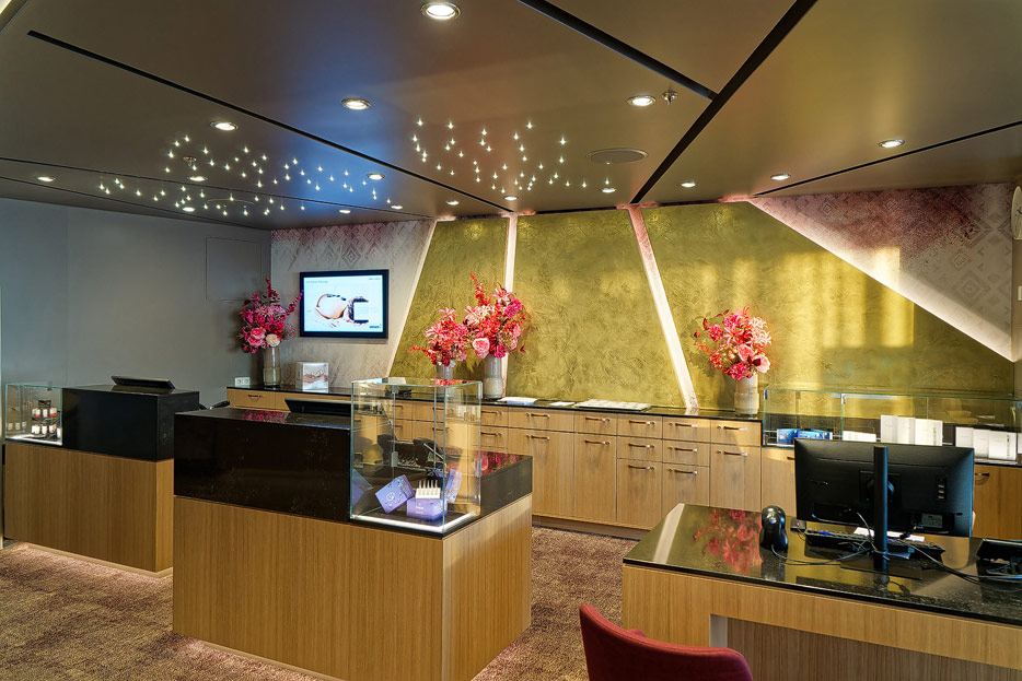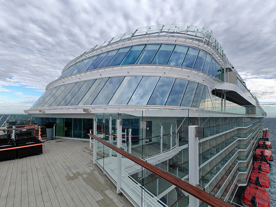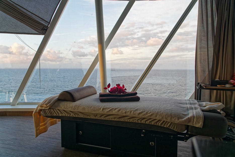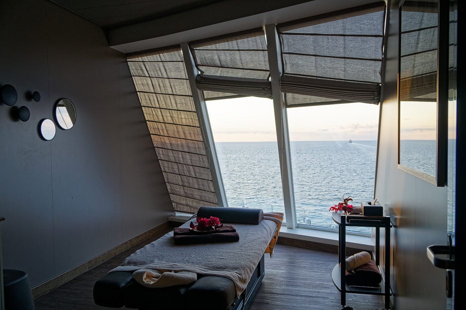 BiIlder des Spa, der Sauna-Landschaft, des Fitness-Studios, Arena-Sporthalle und Joggingbahn der Mein Schiff 7