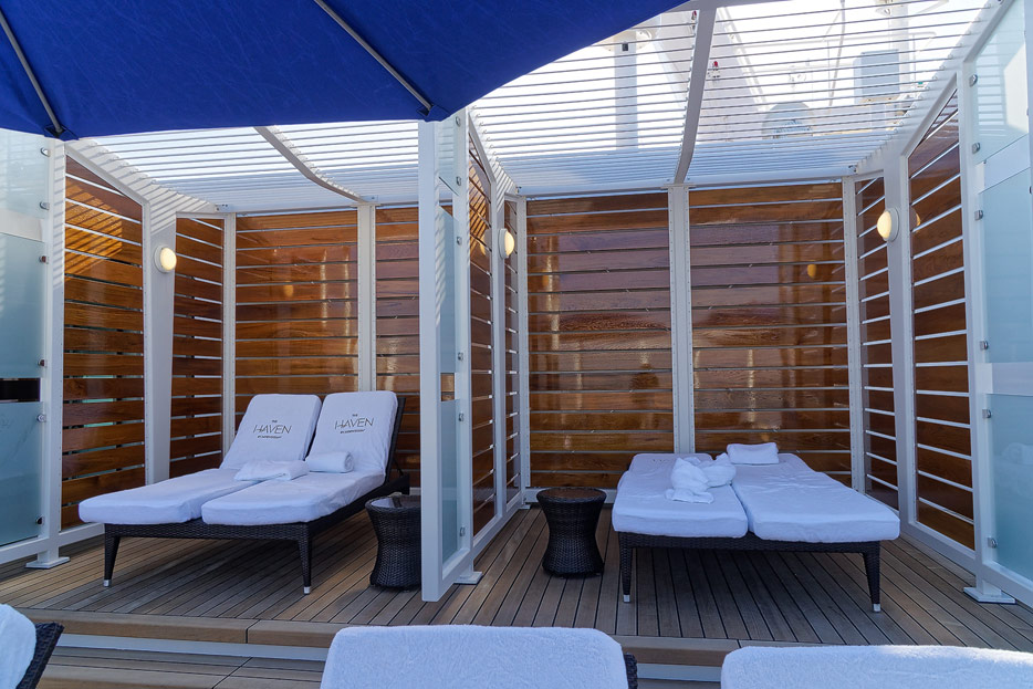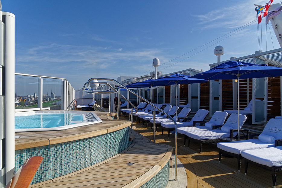 The Haven der Norwegian Bliss – Suiten-Bereich mit Pool, Sonnendeck, Aussichslounge und Restaurant