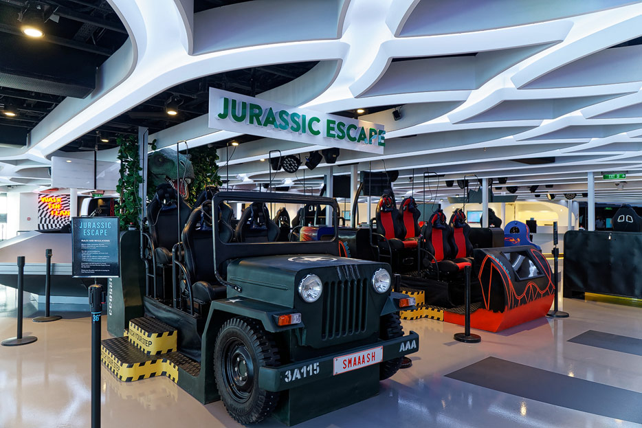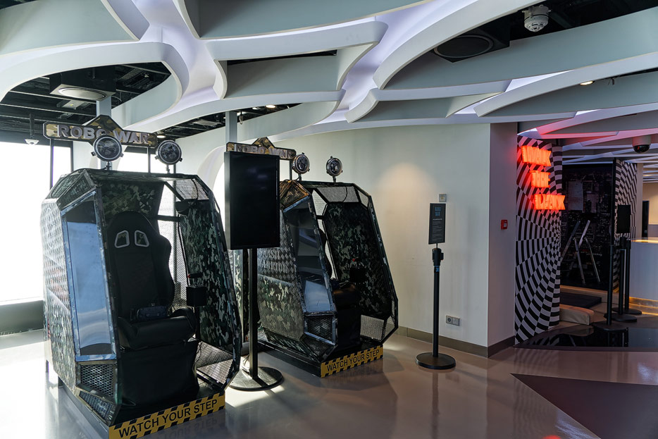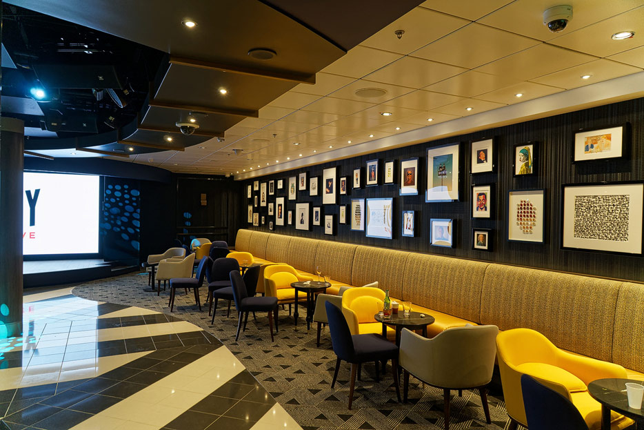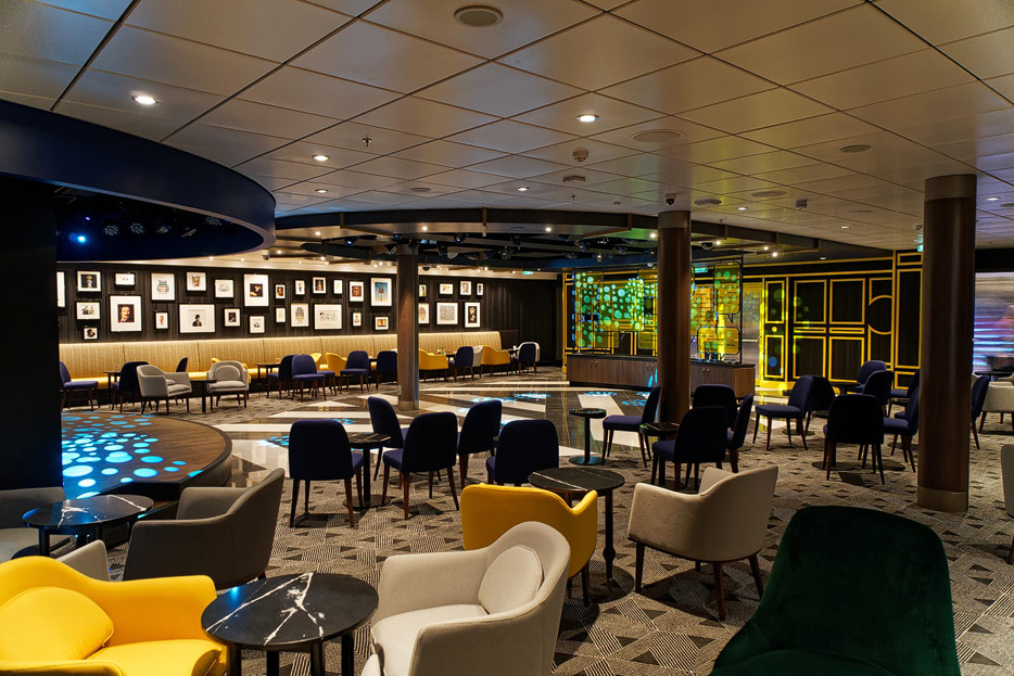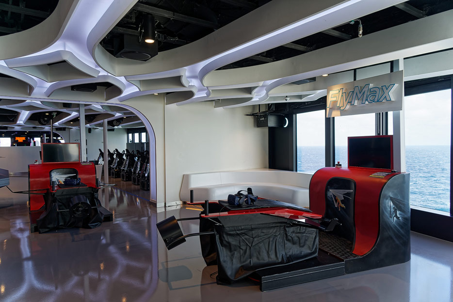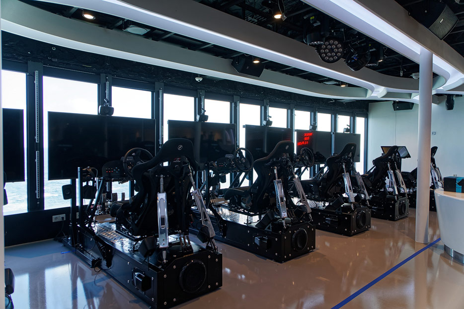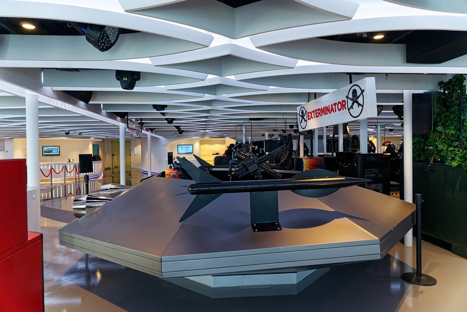 Bilder der Entertainment-Angebote der Norwegian Joy: Theater, Lasertag-Anlage, Comedy Club, Galaxy Pavilion