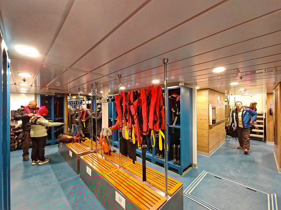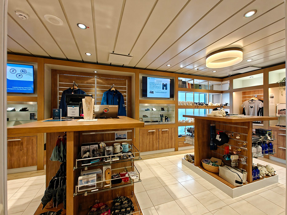 Weitere Bereiche der Ocean Albatros: Mudroom, Treppenhaus, Rezeption, Shop