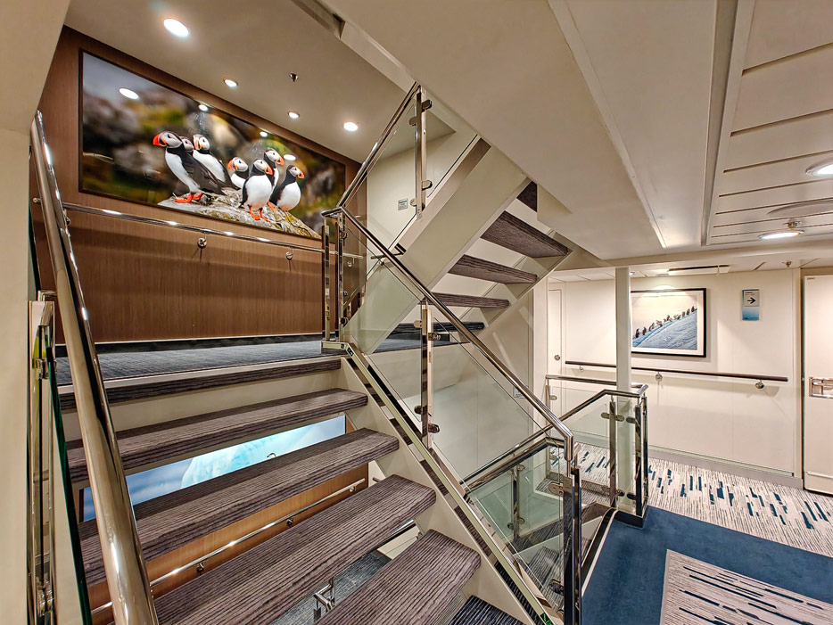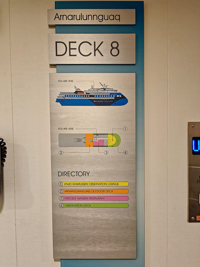 Kapitän Johan BernekornRezeptionRezeptionShopShopTreppenhausTreppenhausKabinengangKabinengangZugang zur Observation LoungeZodiacsZodiacsAusflugsdeskMudroomMudroomMudroomInfotafelInfotafelWegweiser