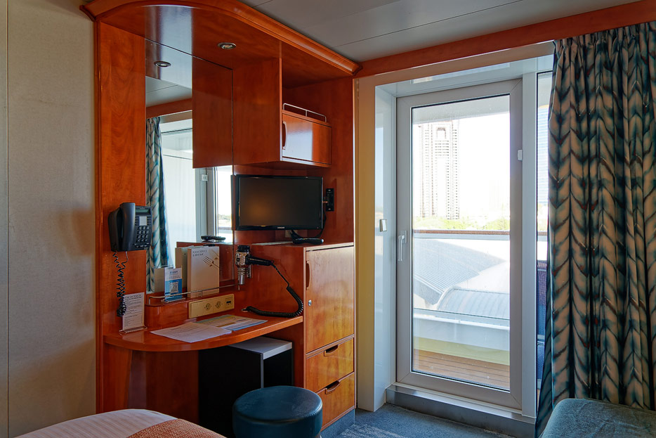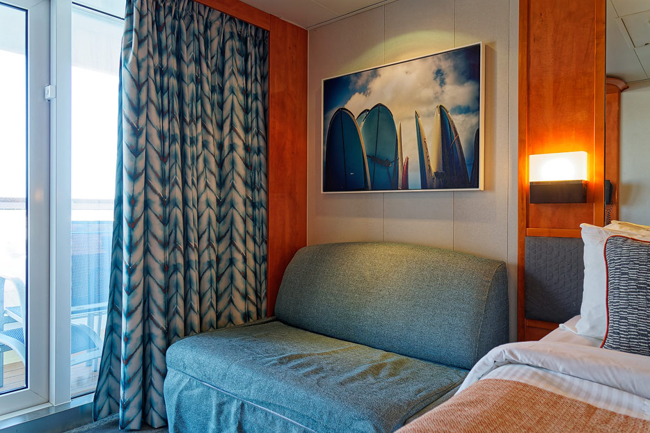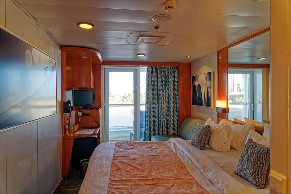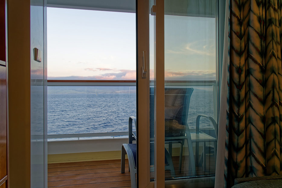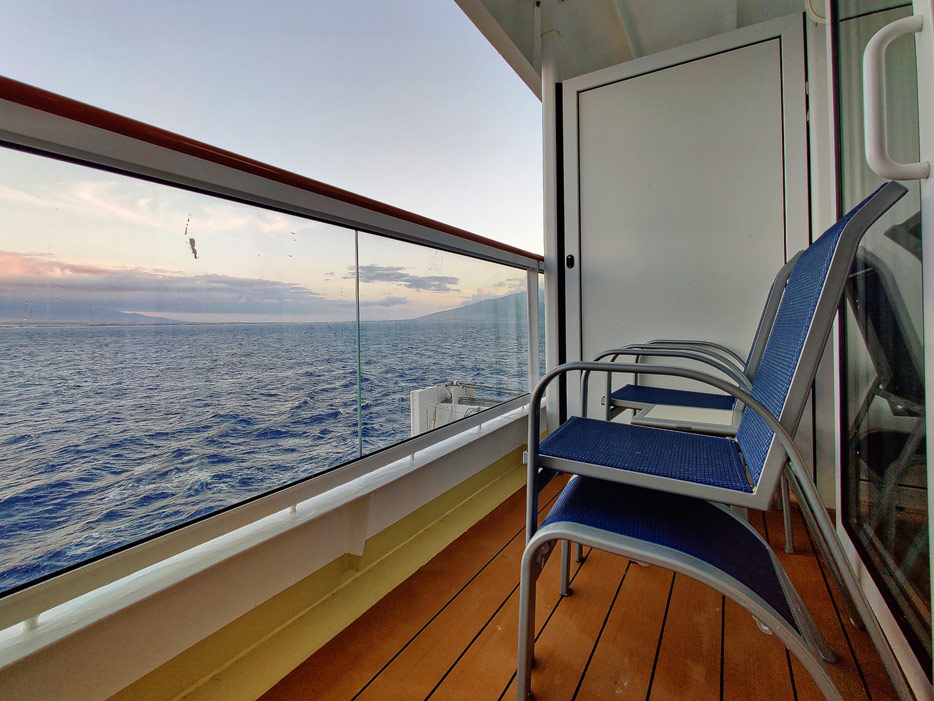 Bilder der Balkon-Kabine 8124 in einer Studio-Single-Kabine nebst Sudio-Lounge der Pride of America (Norwegian Cruise Line)