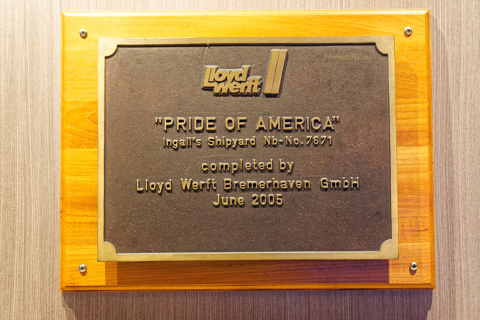 Kreuzfahrtschiff-Bilder › Pride of America › Schiff Pride of America Schiff Außenaufnahmen der Pride of America (Norwegian Cruise Line) Pride of AmericaWerft-Bauschild‹12