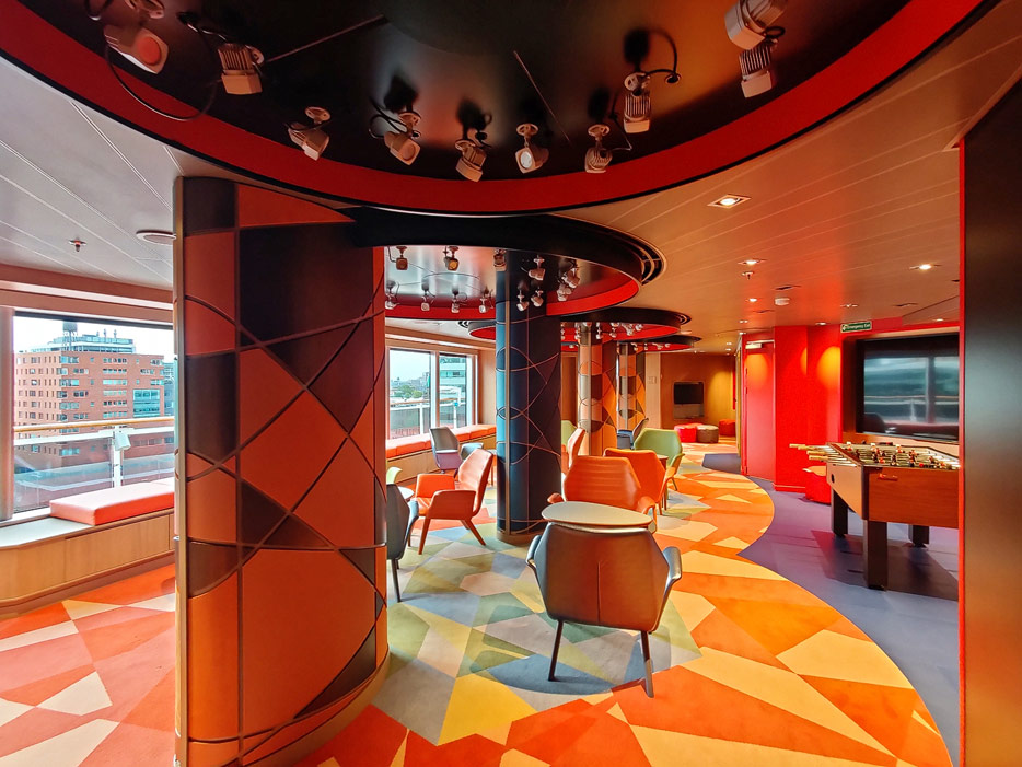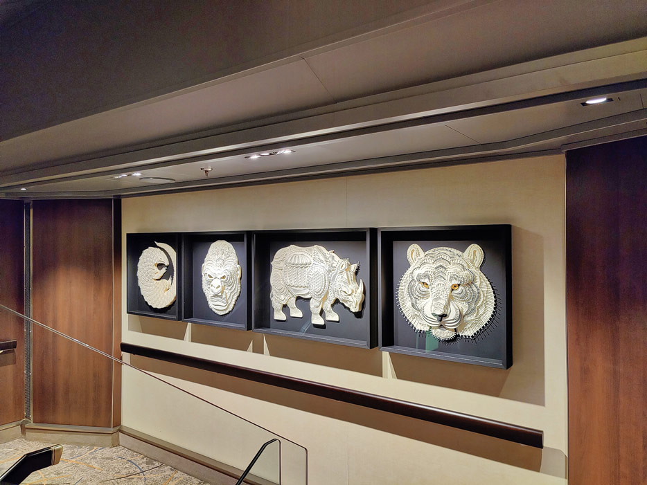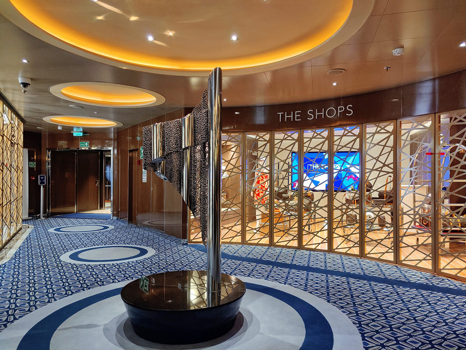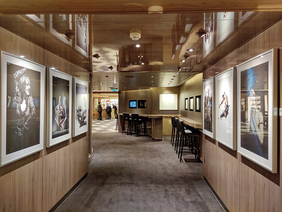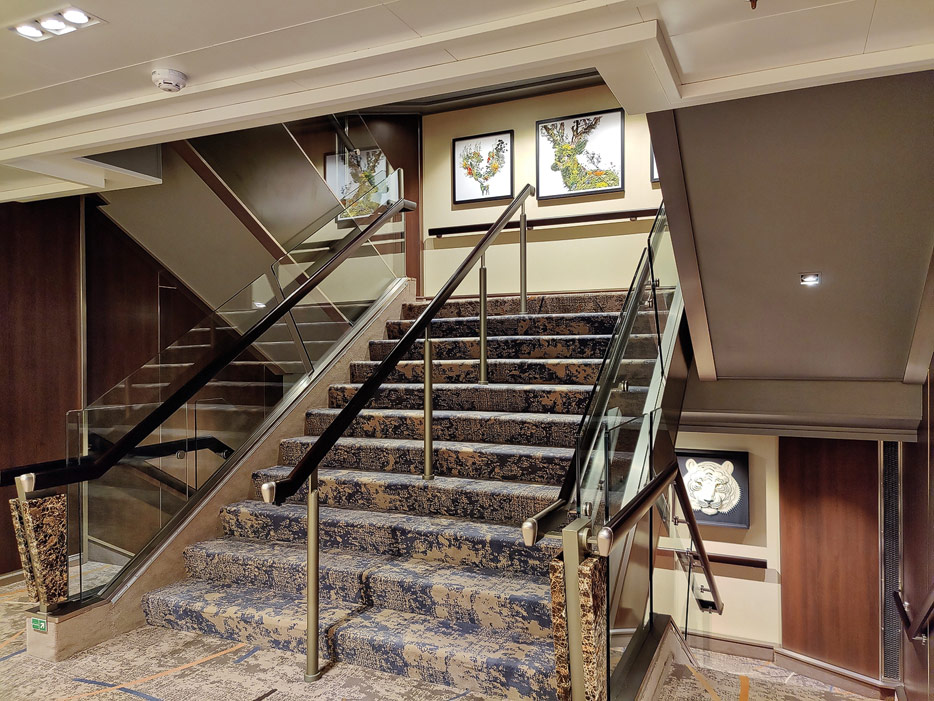 Bilder weiterer Bereiche auf der Rotterdam (VII) von Holland America Line: Club HAL mit Kids- und Teens-Club, Shops, Casino, Internet-Center sowie Kunst in den Treppenhäusern