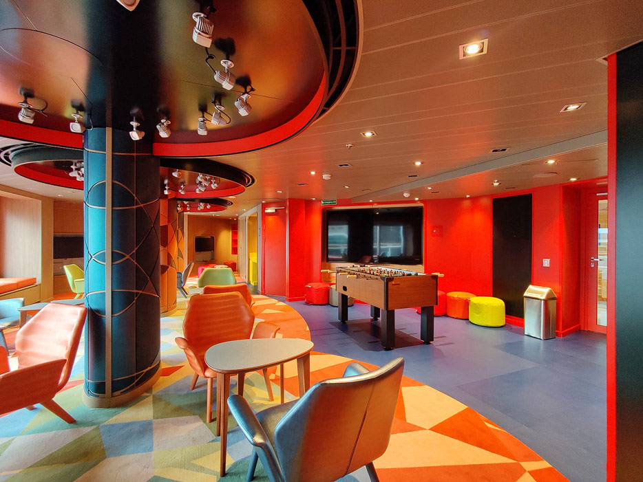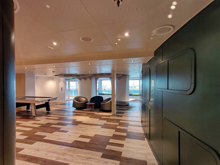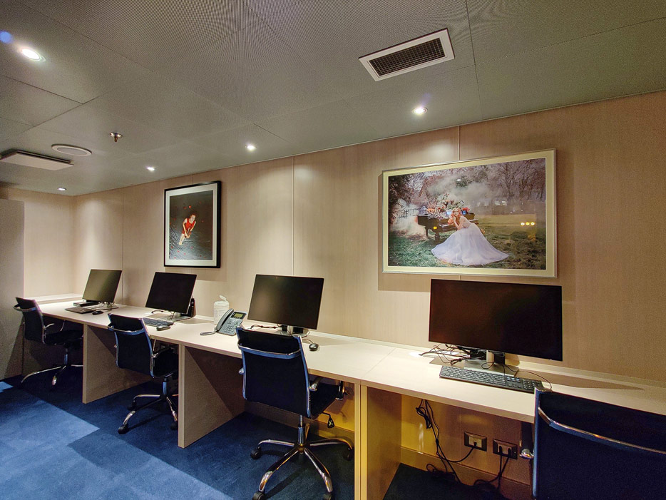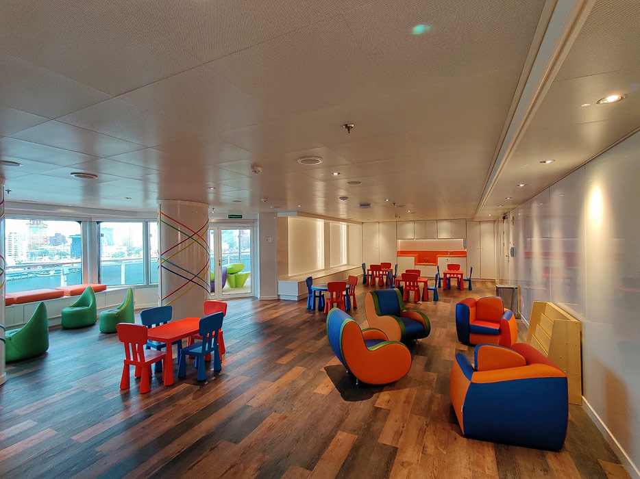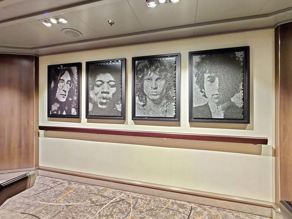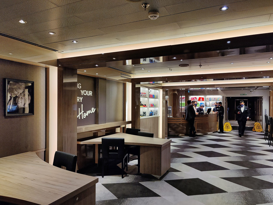 Bilder weiterer Bereiche auf der Rotterdam (VII) von Holland America Line: Club HAL mit Kids- und Teens-Club, Shops, Casino, Internet-Center sowie Kunst in den Treppenhäusern