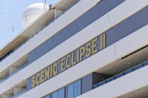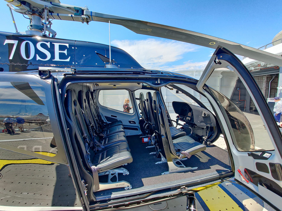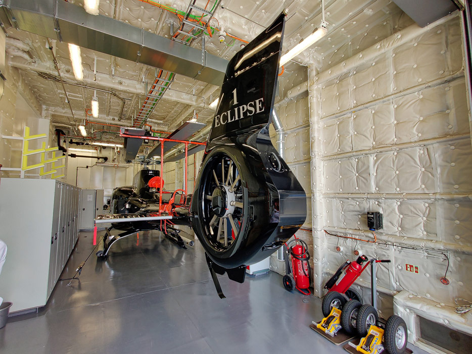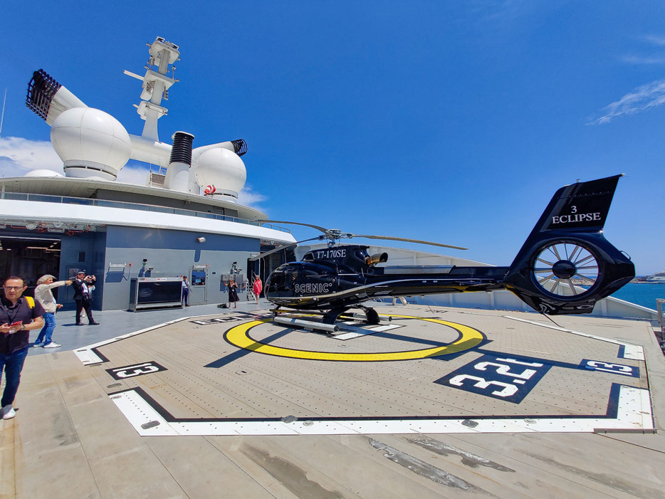 Außenansichten der Scenic Eclipse II und Bider eines der beiden Hubschrauber an Bord