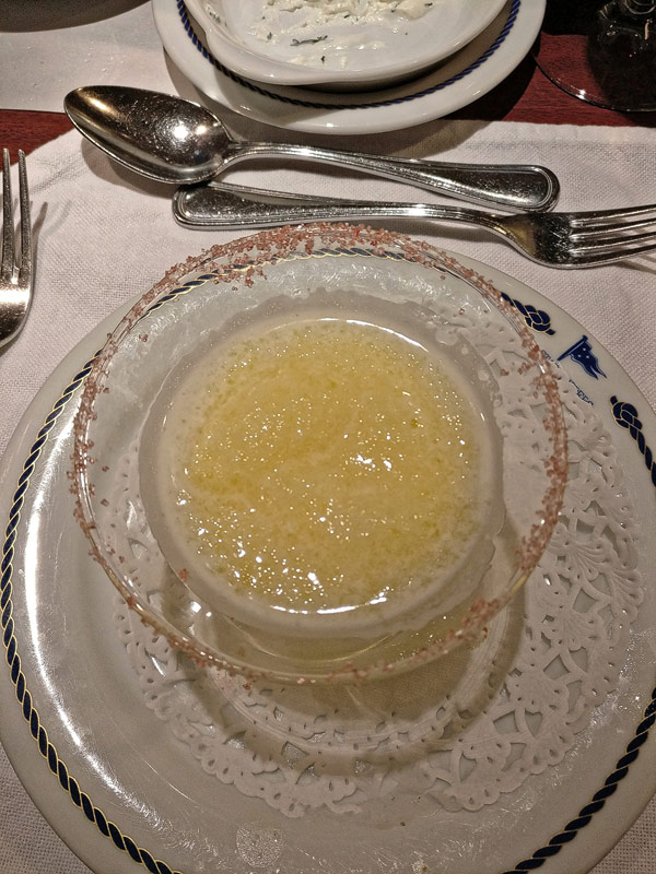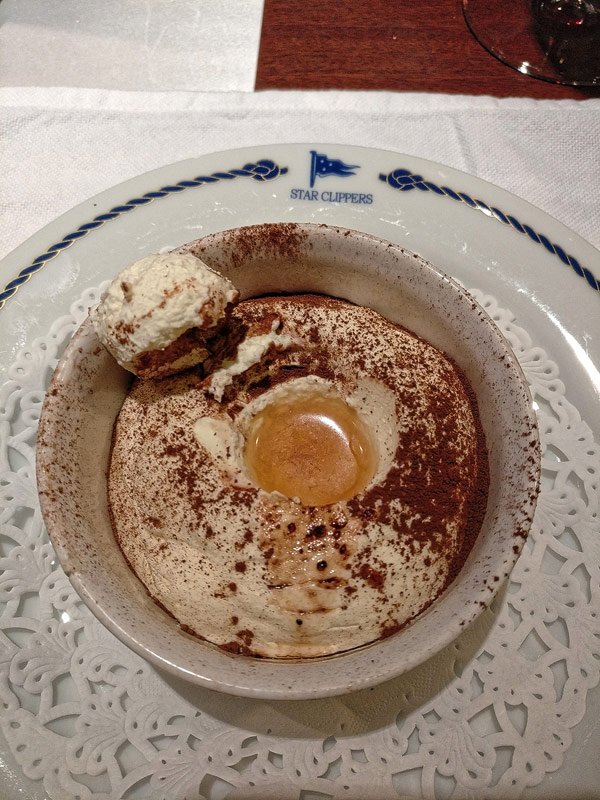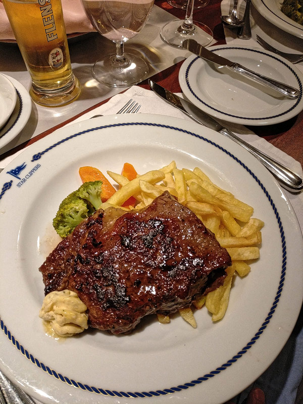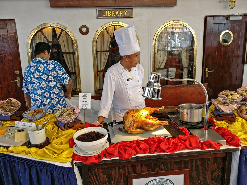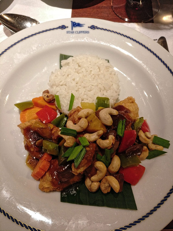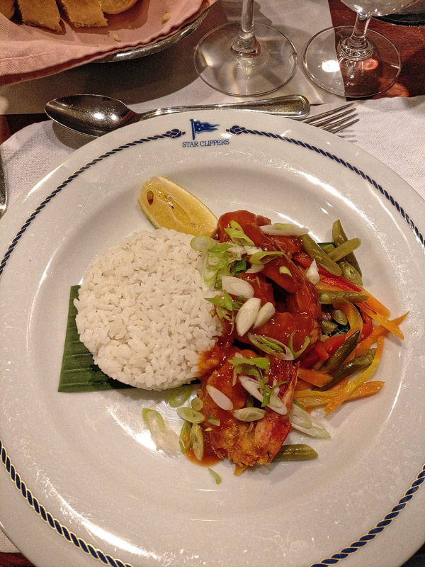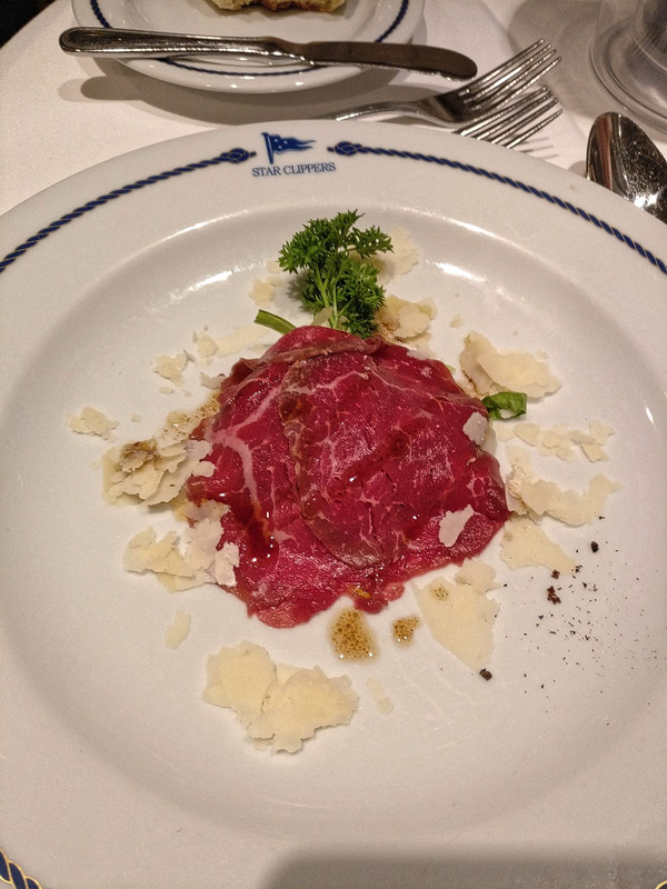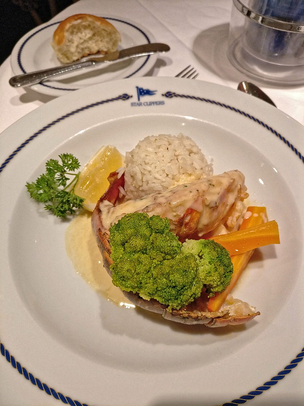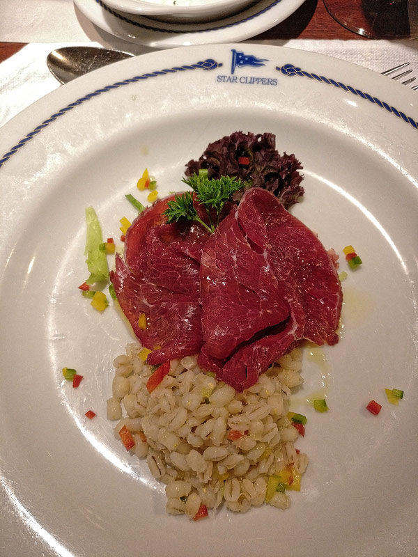 Mittags-BBQ an der Tropical BarBresaola mit GraupensalatPfirsich-SorbetGeflügel mit Erdnüssen aus dem WokEissouffle Grand MarnierKäseCarpaccio vom Rind mit ParmesanCaesar SaladHummerKäseBaked AlaskaBaked AlaskaPalmenherzen mit AvocadoCrepes mit GeflügelragoutKarotten-ApfelsalatAnanas-SorbetLammrückenShrimp süß-sauerSirloin SteakCreme Brulee