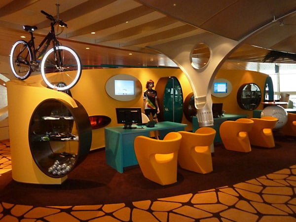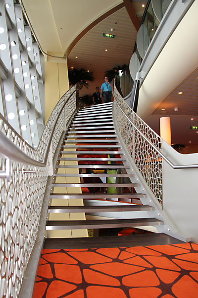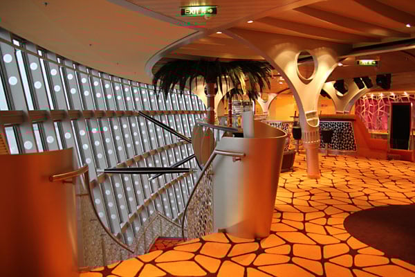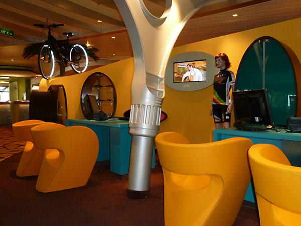 Das Theatrium der AIDAsol und alles, was sich rund um das Theatrium findet: Rezeption, 4D-Kino, Golf-, Bike- und Tauch-Counter, AIDA Studio