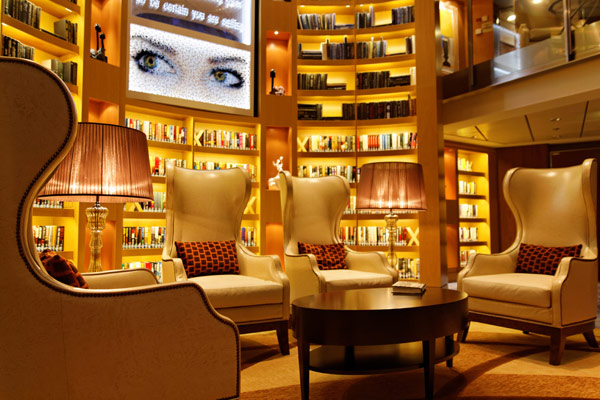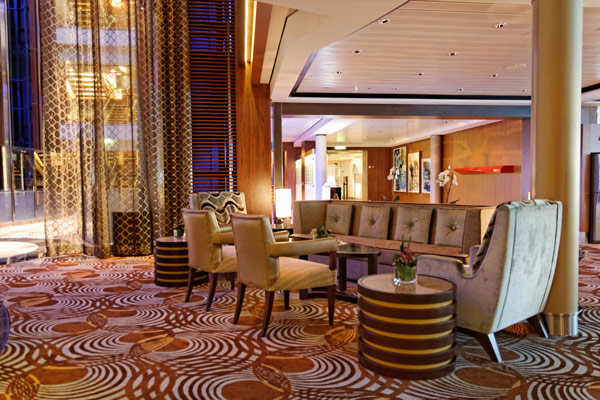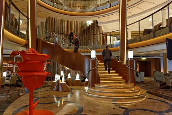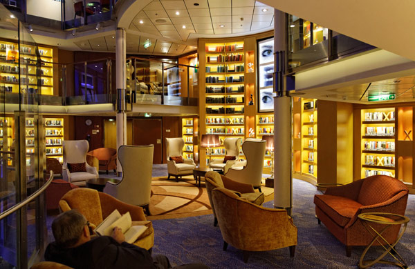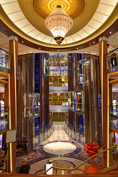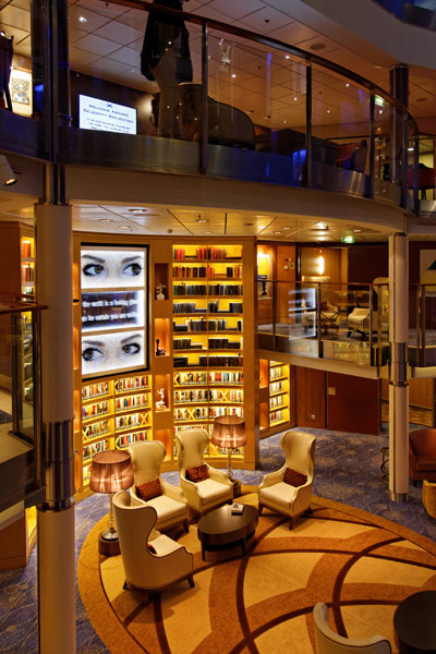 Atrium, Entertainment Court und Shops der Celebrity Reflection, inkl. Bibliothek, Hideaway, Games On, Future Cruise Sales, iLounge