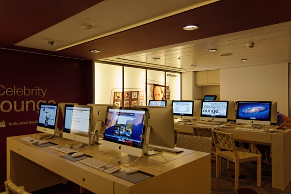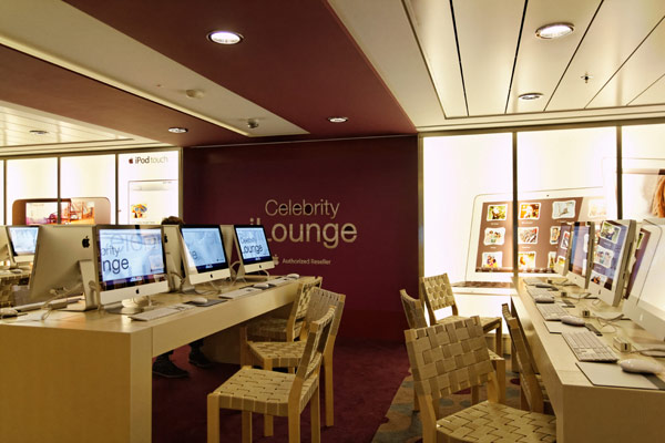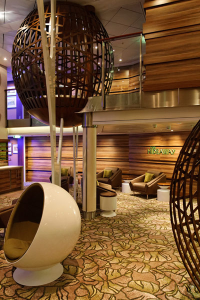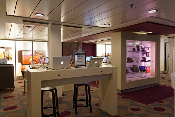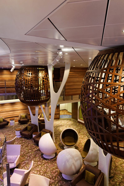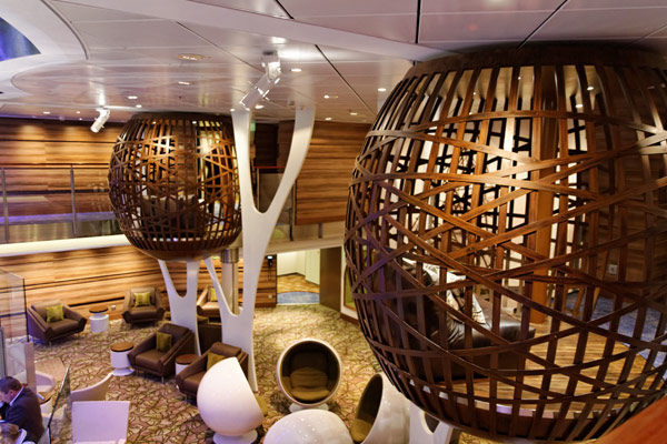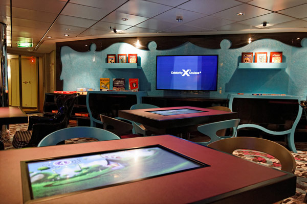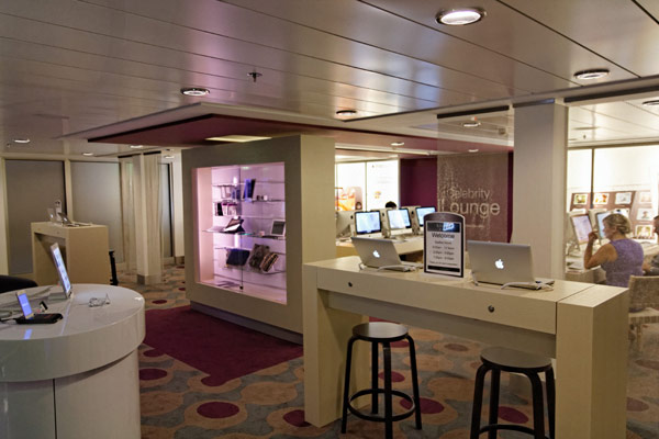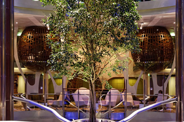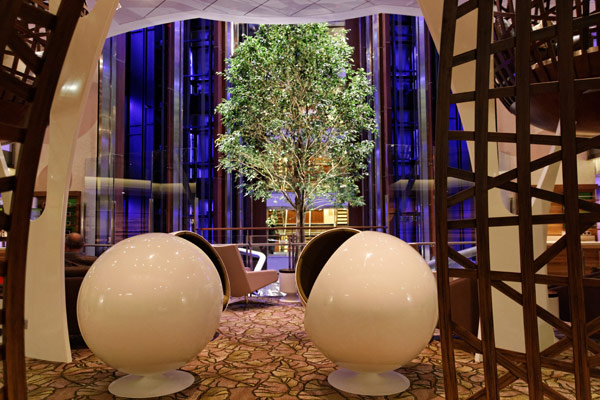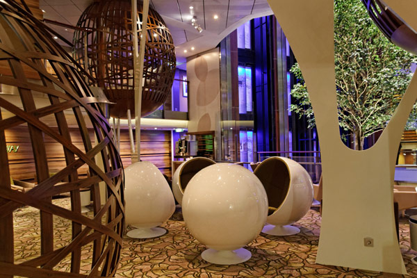 Atrium, Entertainment Court und Shops der Celebrity Reflection, inkl. Bibliothek, Hideaway, Games On, Future Cruise Sales, iLounge