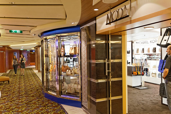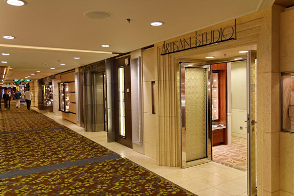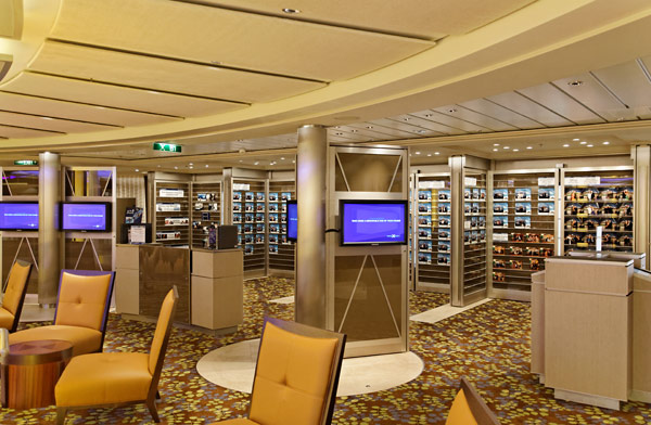 Sonstige Innenräume der Celebrity Silhouette: Shops, Casino, Konferenzzentrum, Entertainment Court, Celebrity Central